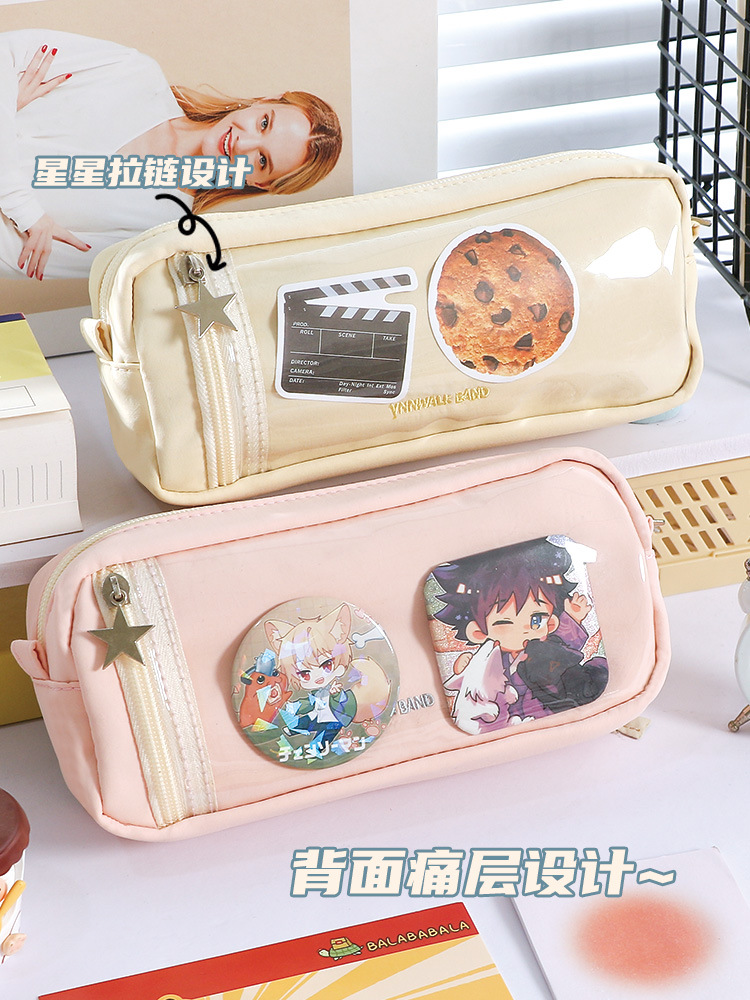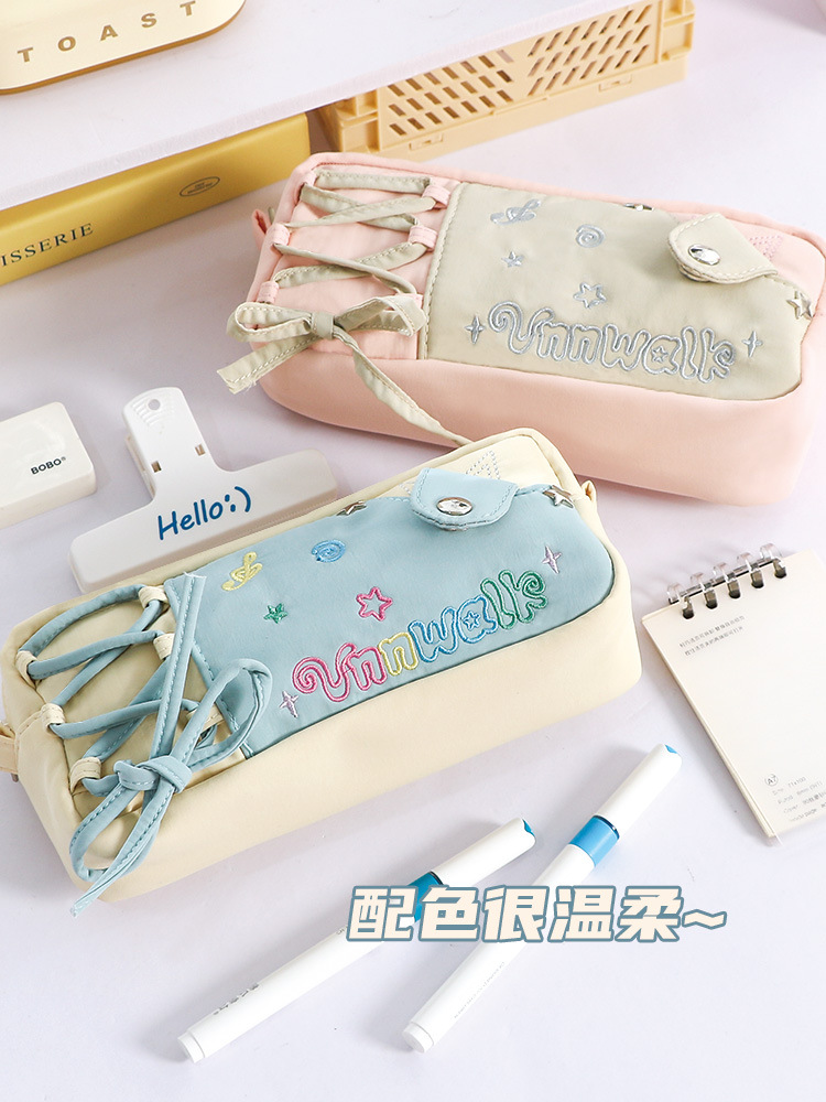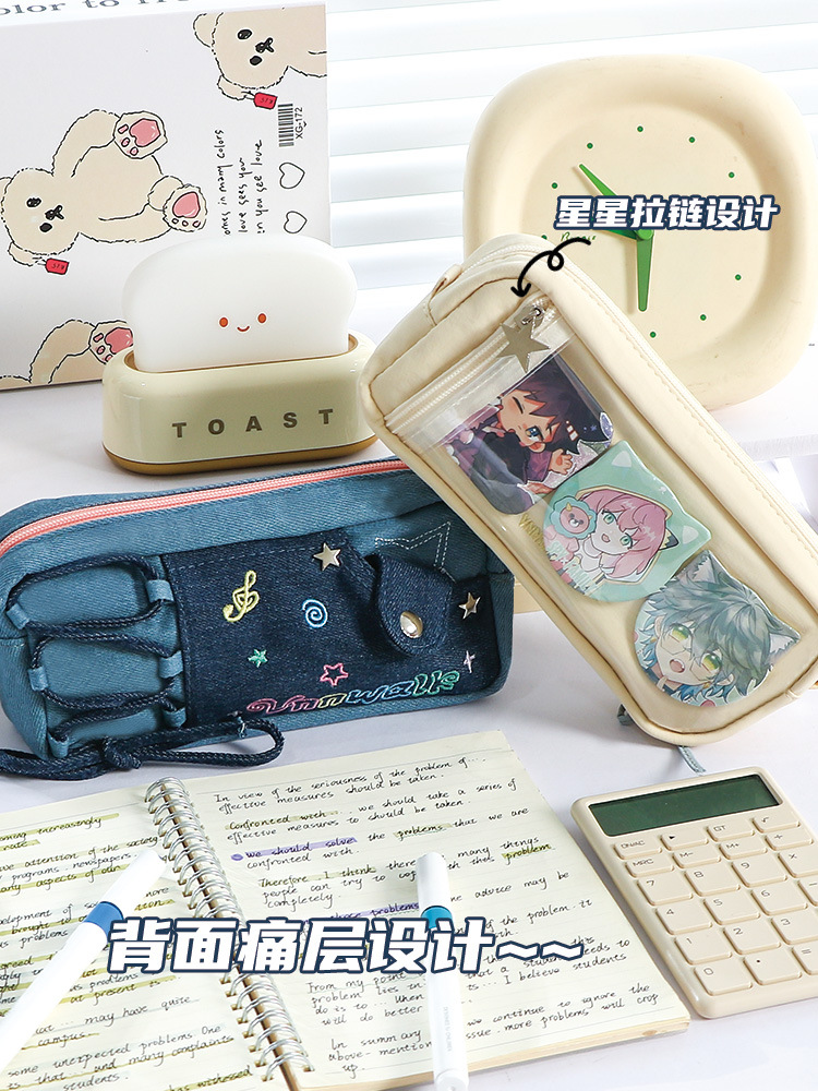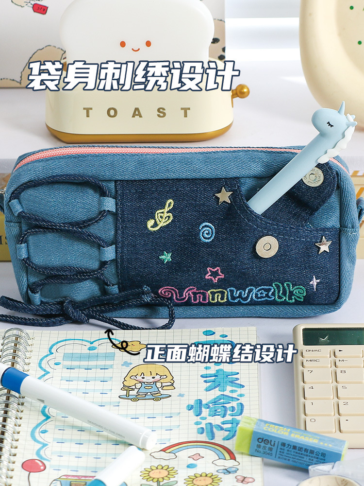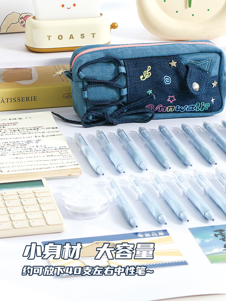 新款多巴胺撞色牛仔痛层笔袋耐脏小众设计感大容量文具袋