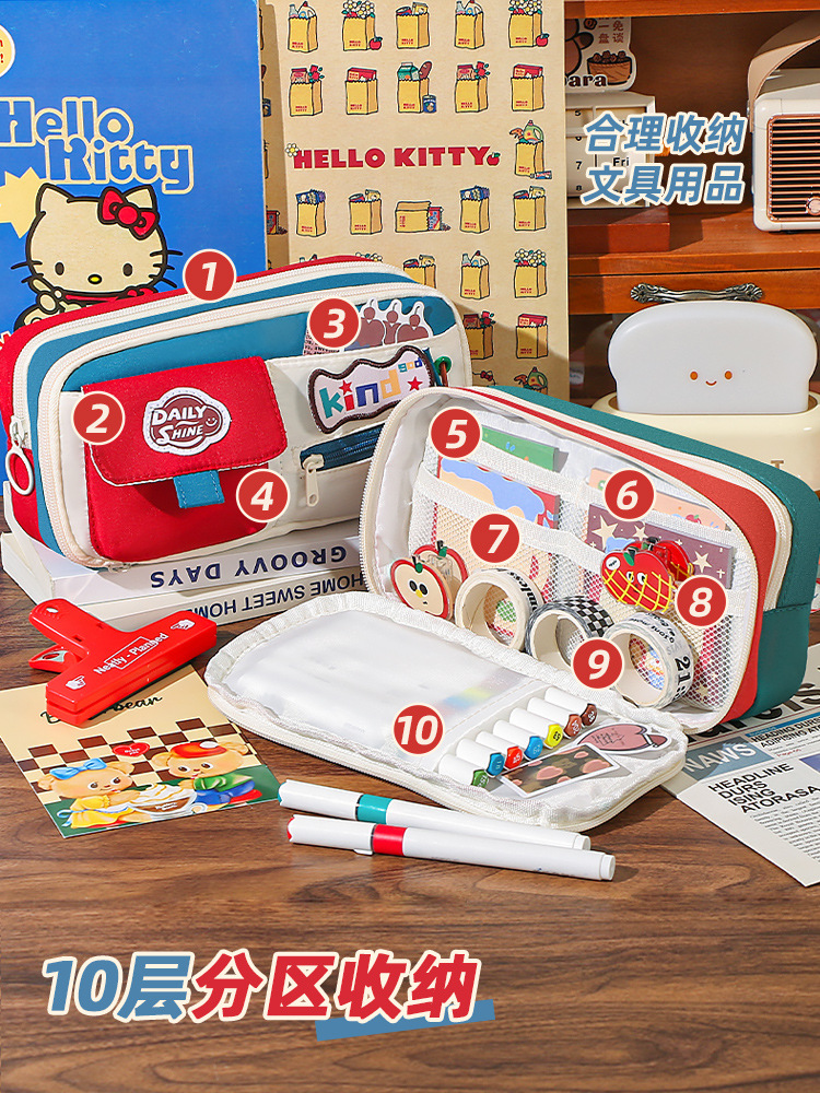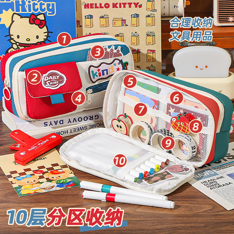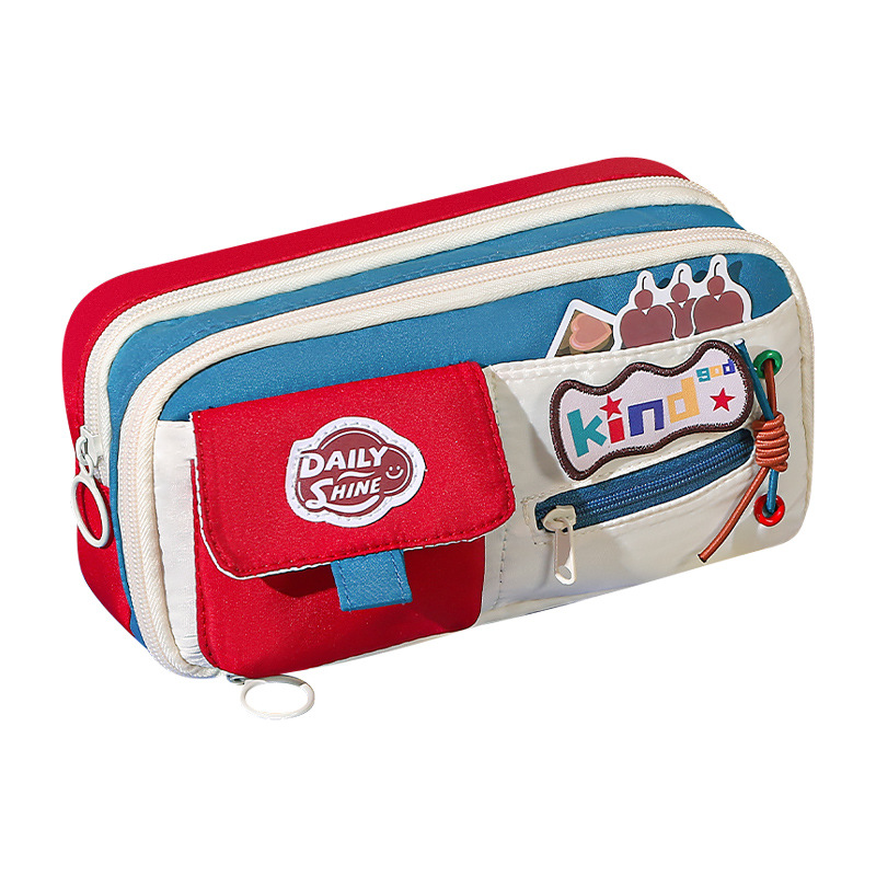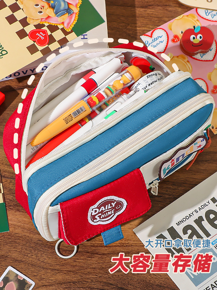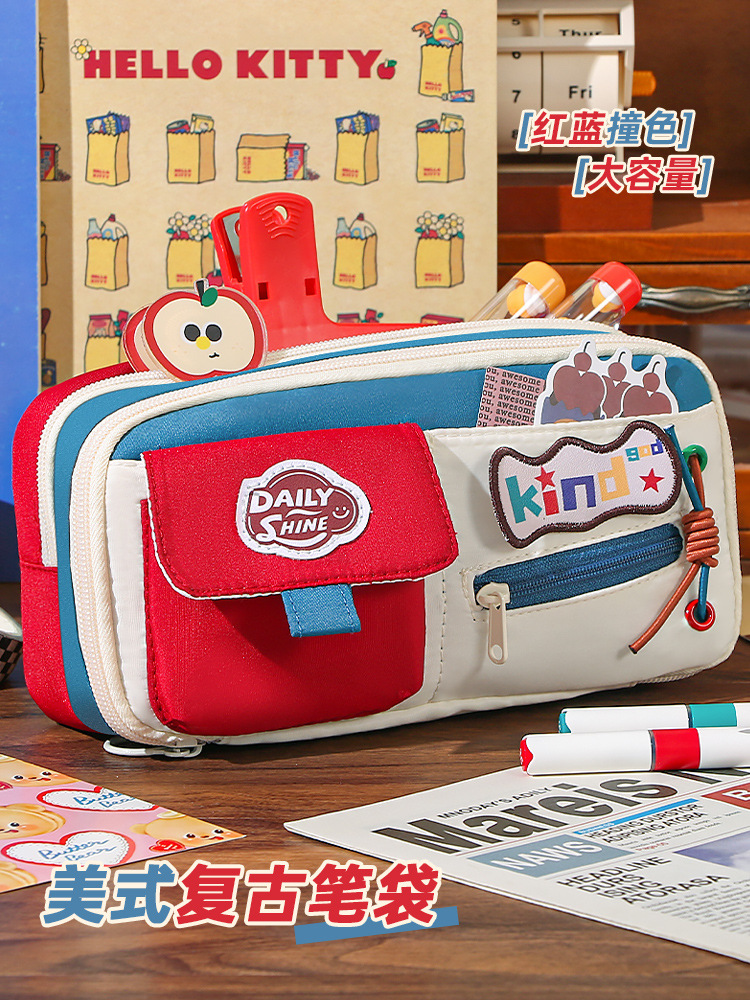 新款大容量美式复古撞色笔袋小众耐脏高颜值多功能文具收纳袋 投诉