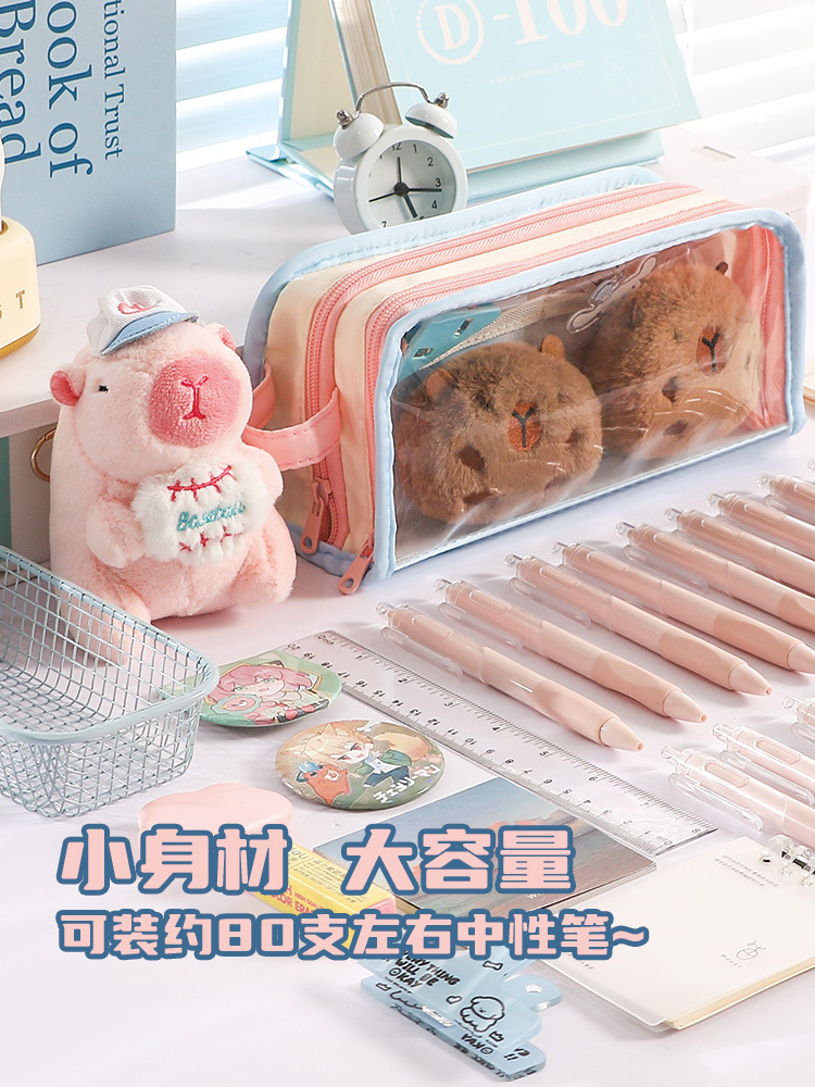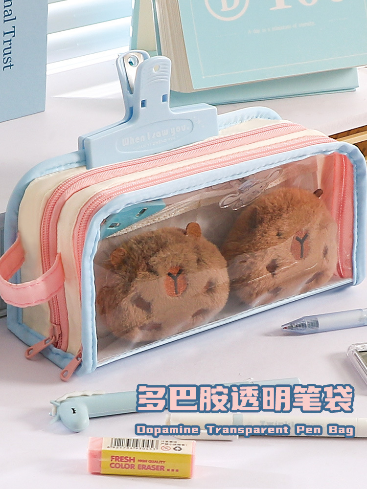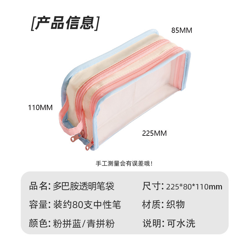 多巴胺可爱手提双透拼色笔袋小众不撞款中小学生文具袋 投诉