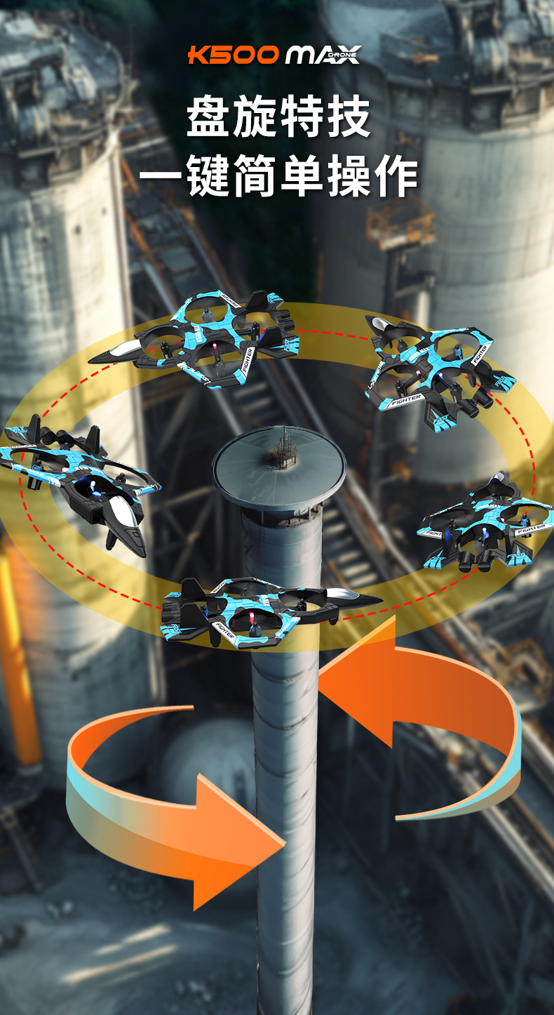 K500战斗无人机四通道悬浮四轴无人机定高翻滚特技遥控灯光飞机 English | 投诉