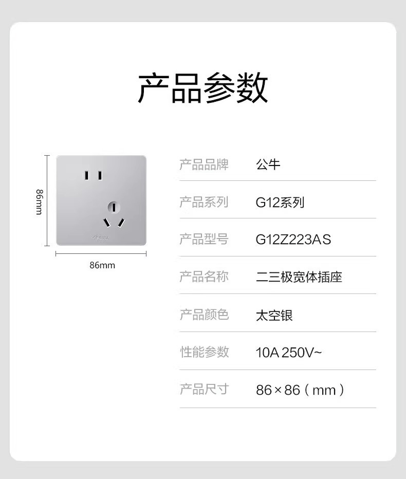 | G12E537 五孔+二位USB插座(A+C) 太空银色 | ¥16608 | 104个可售 |
