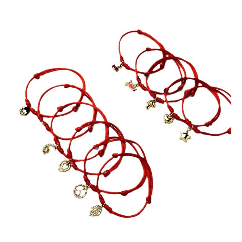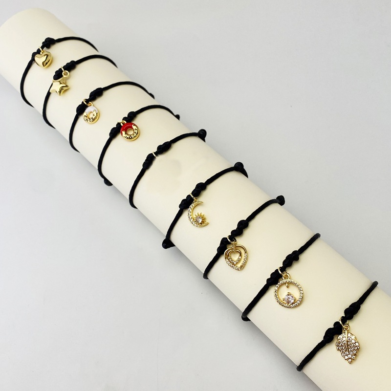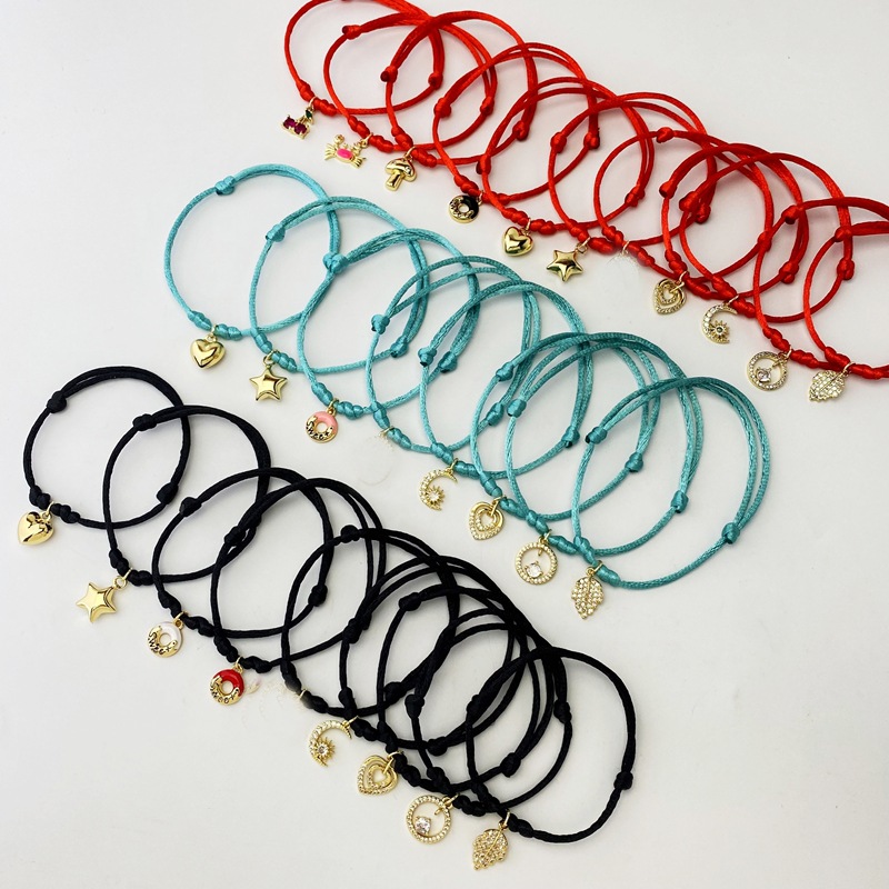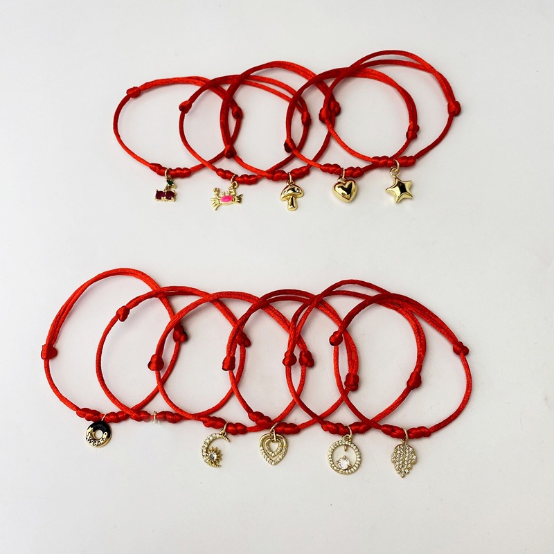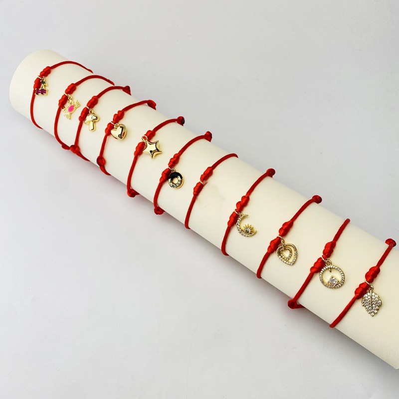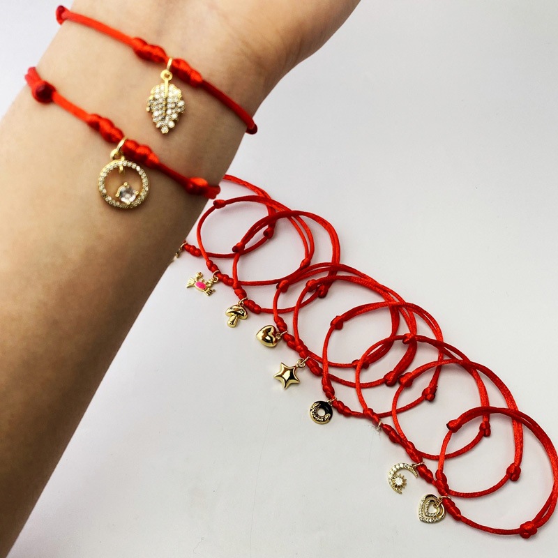 跨境新款微镶锆手绳爱心桃心树叶月亮流苏红绳手链厂家直销 English | 投诉