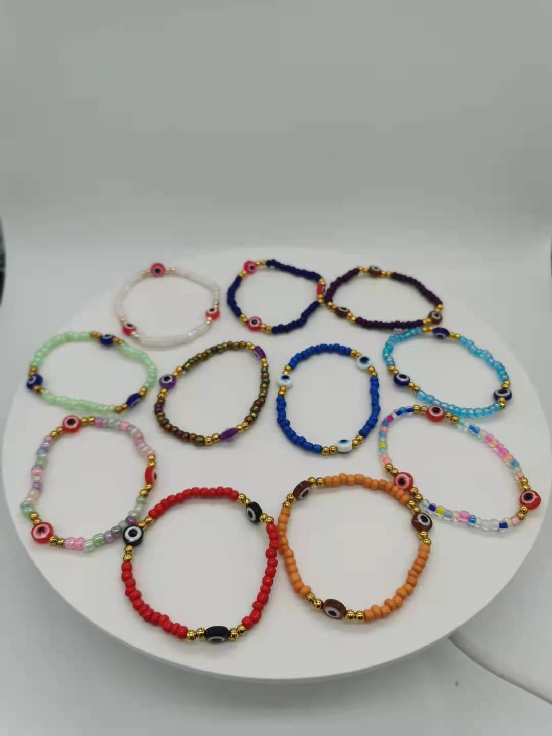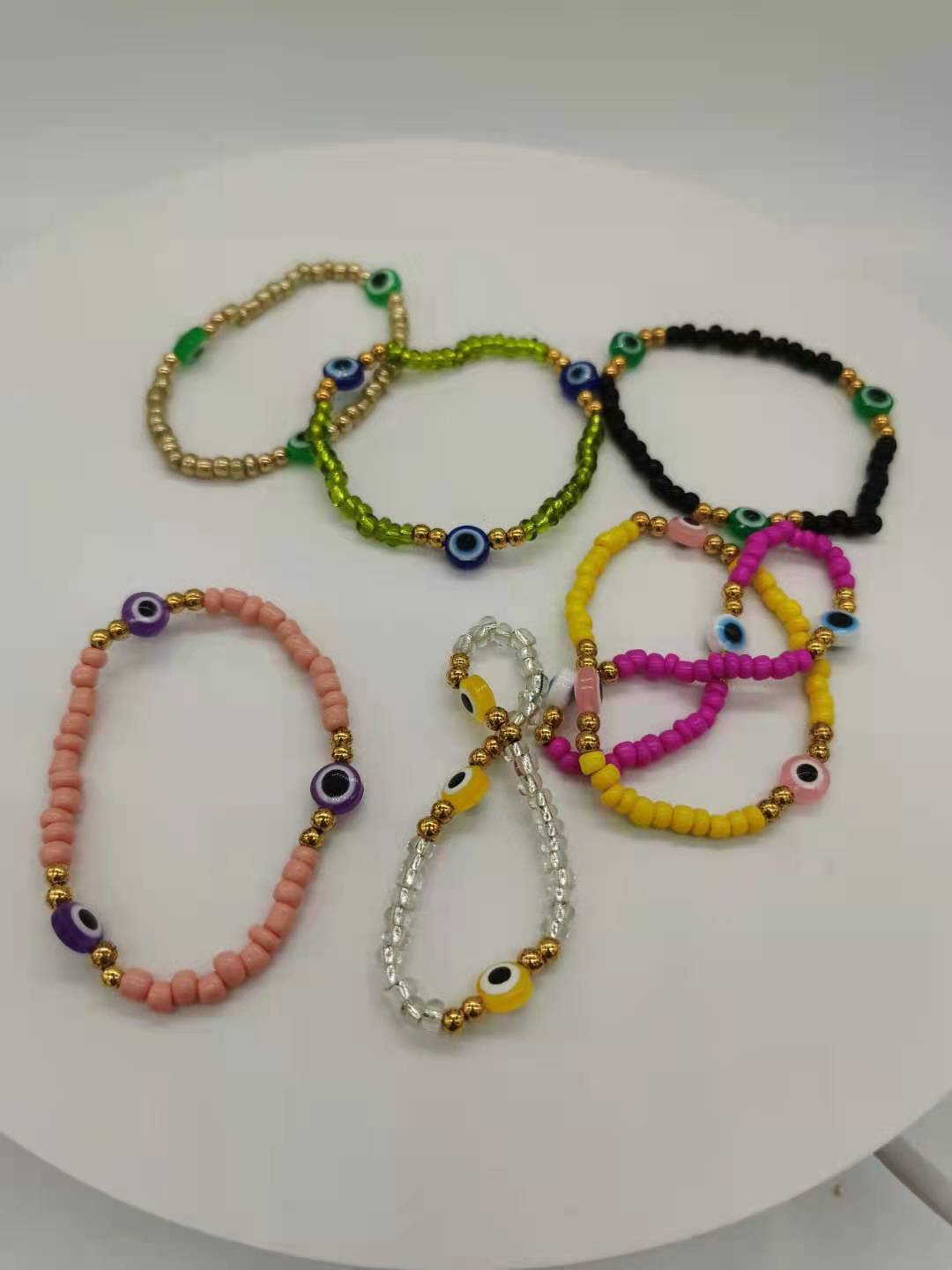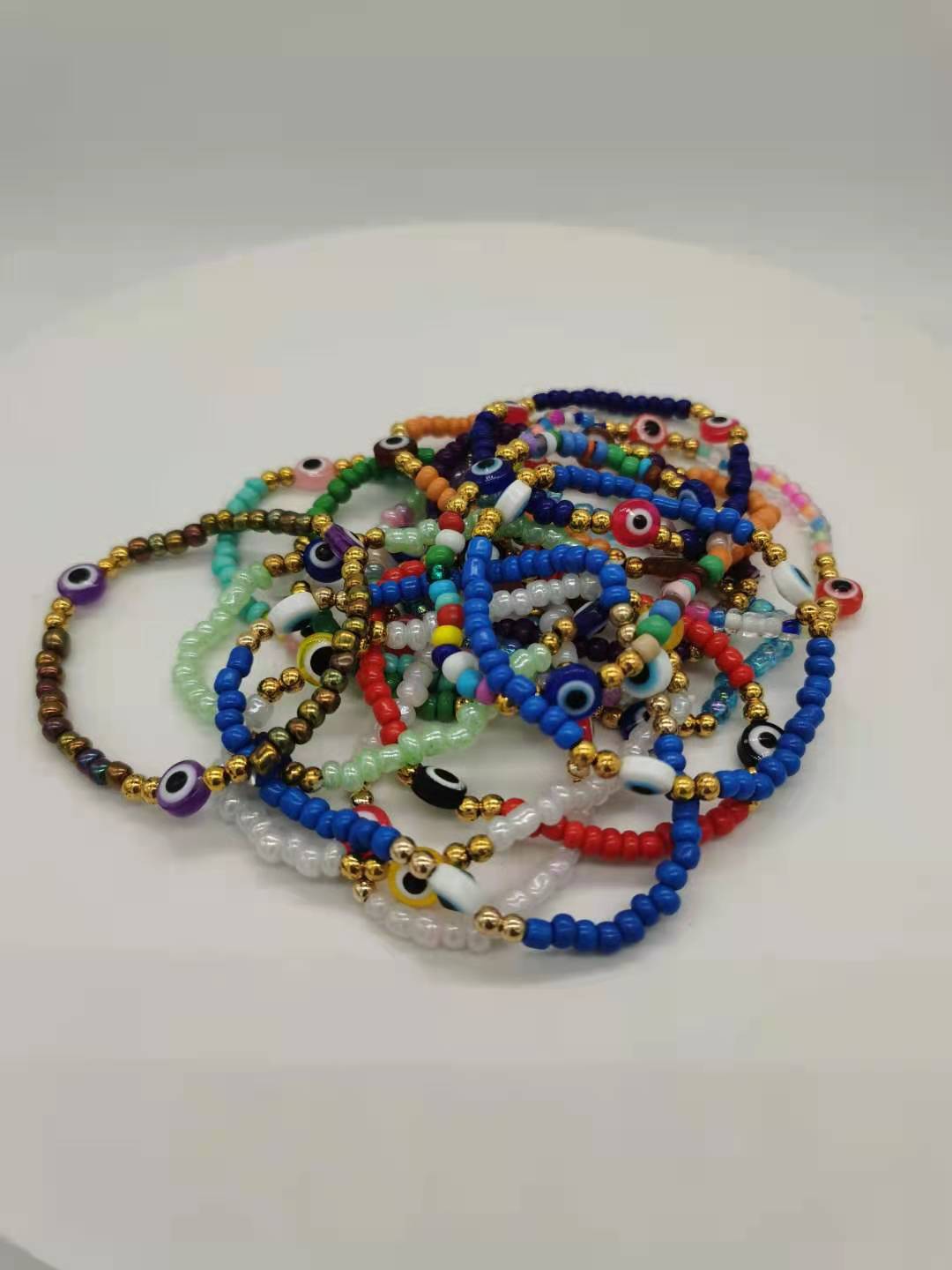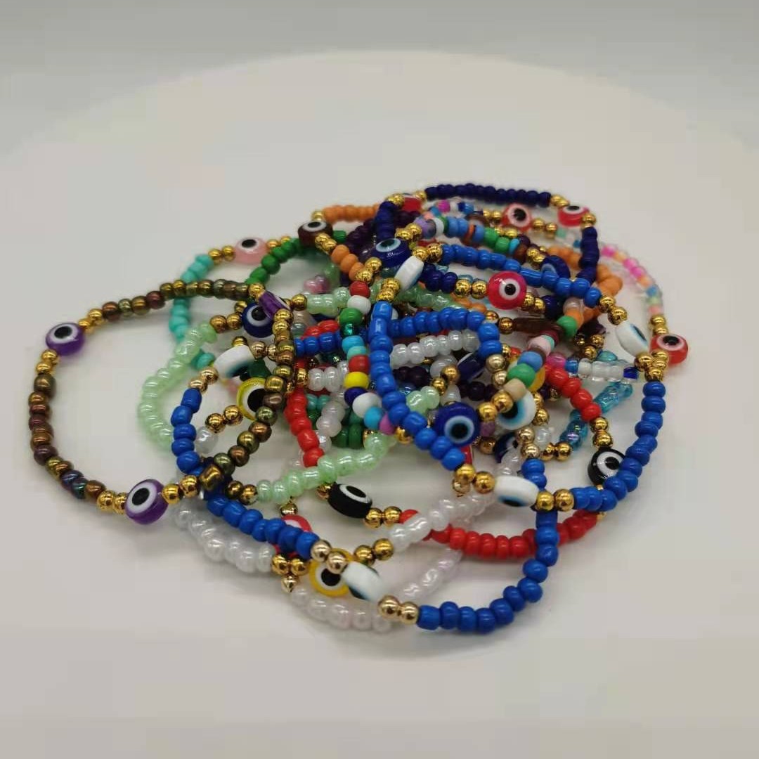 恶魔之眼玻璃米珠手串百搭波西米亚风撞色叠戴弹力手链套装 English | 投诉