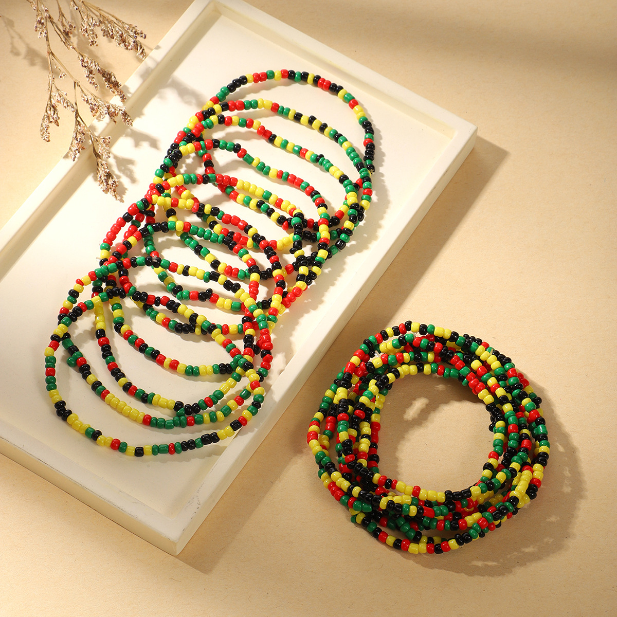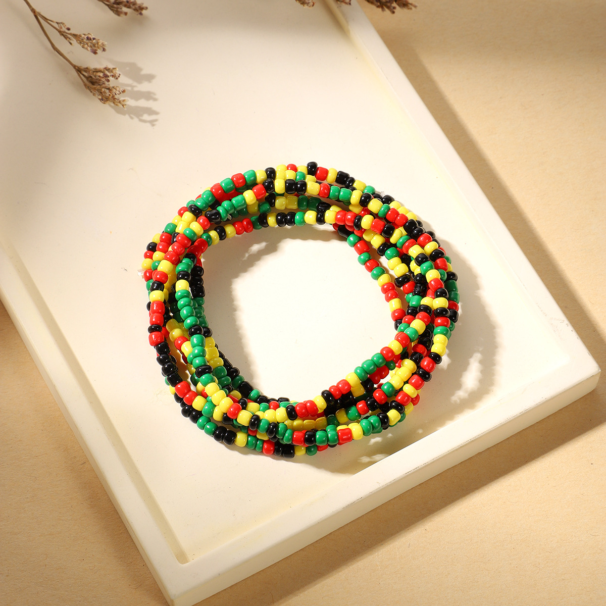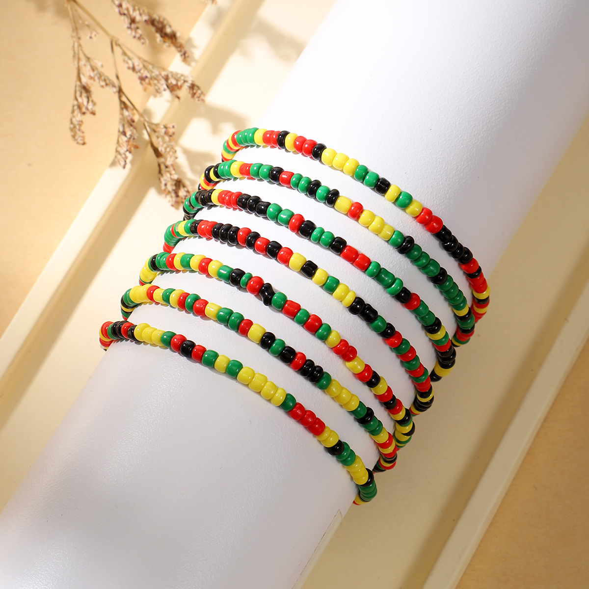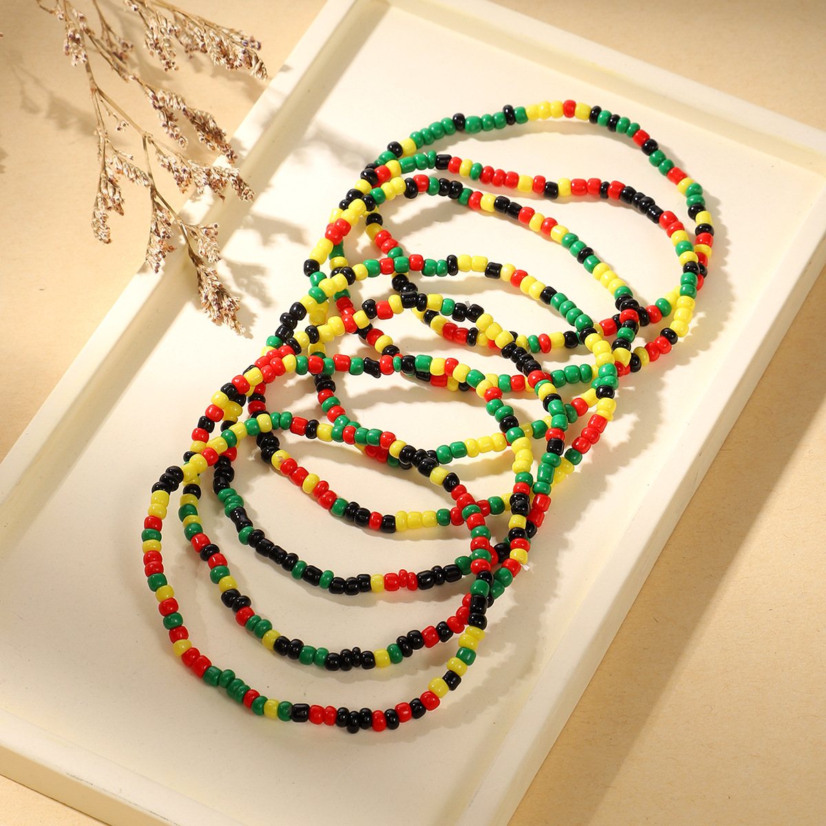 黑人历史月波西米亚黑红黄绿米珠混色搭配手链弹性手串