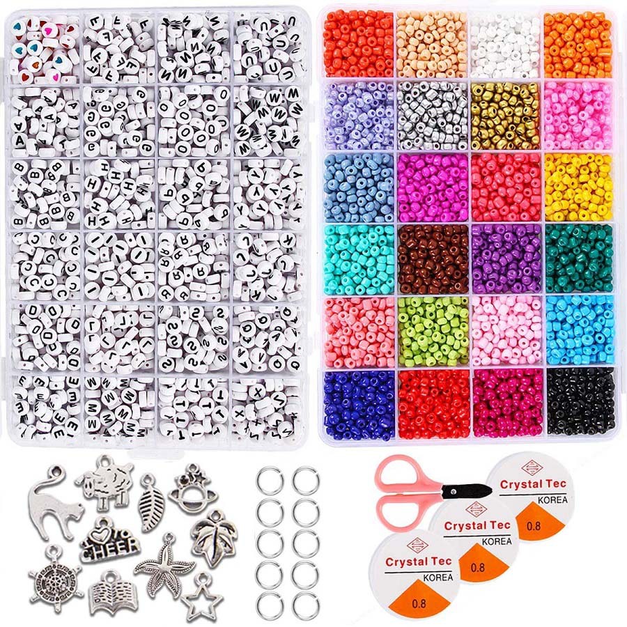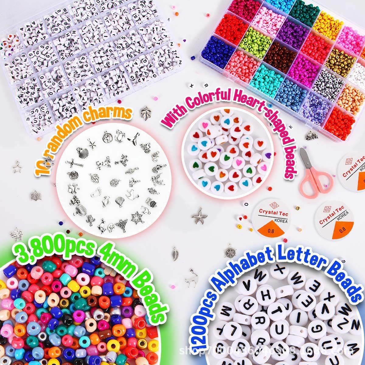 4mm玻璃米珠带字母串珠套装5000pcs
