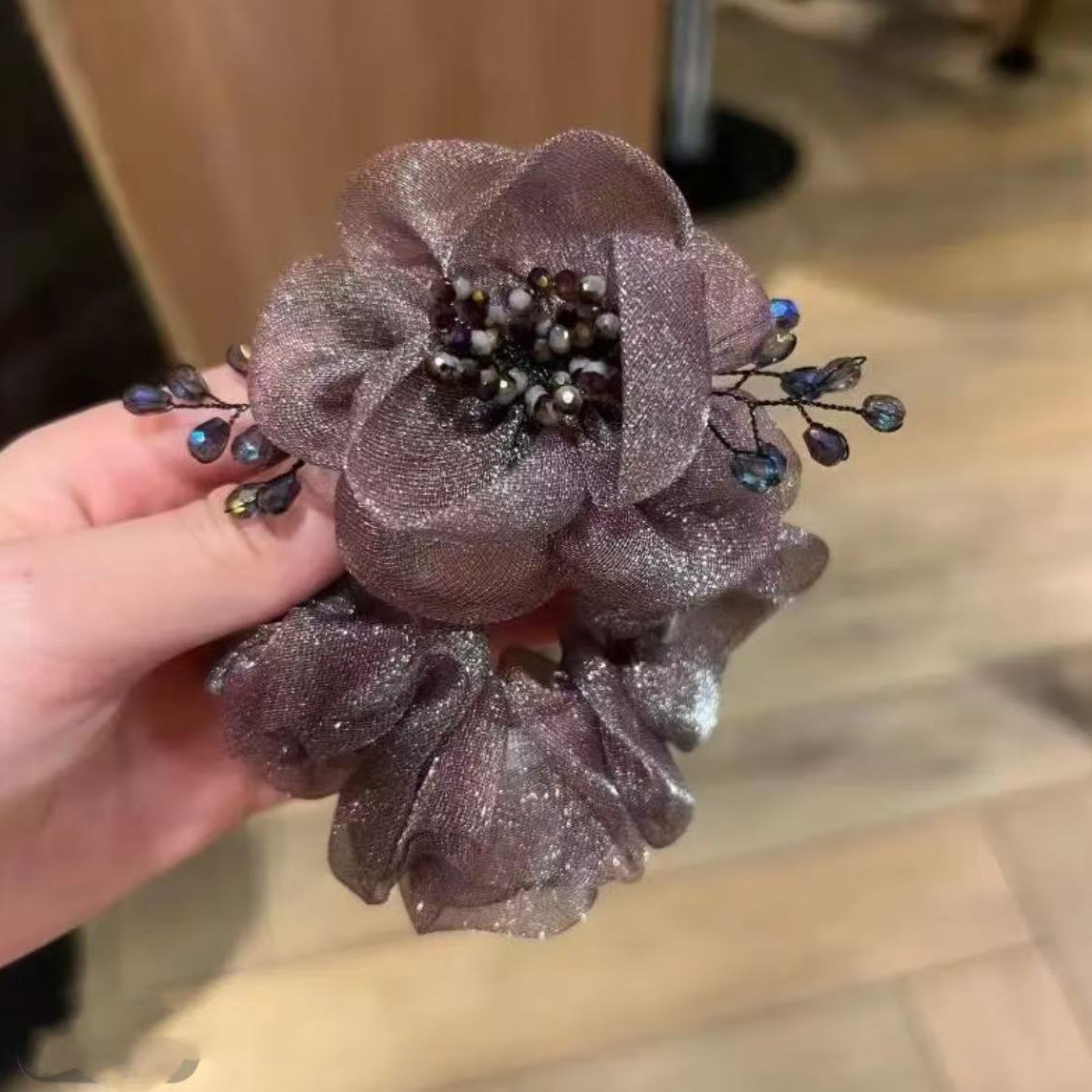 产品类别: 大肠发圈 材质: 金属 品牌: 哈韩宅物 处理工艺: 手工 产地: 金华 主要下游平台: wish,快手,天猫,抖音 颜色: 黑色,紫色,香槟,深紫 流行元素: 山茶花 上市年份/季节: 其他 风格: 轻奢风 款式: 高弹力 风格分类: 时尚通勤 流行元素分类: 植物花卉