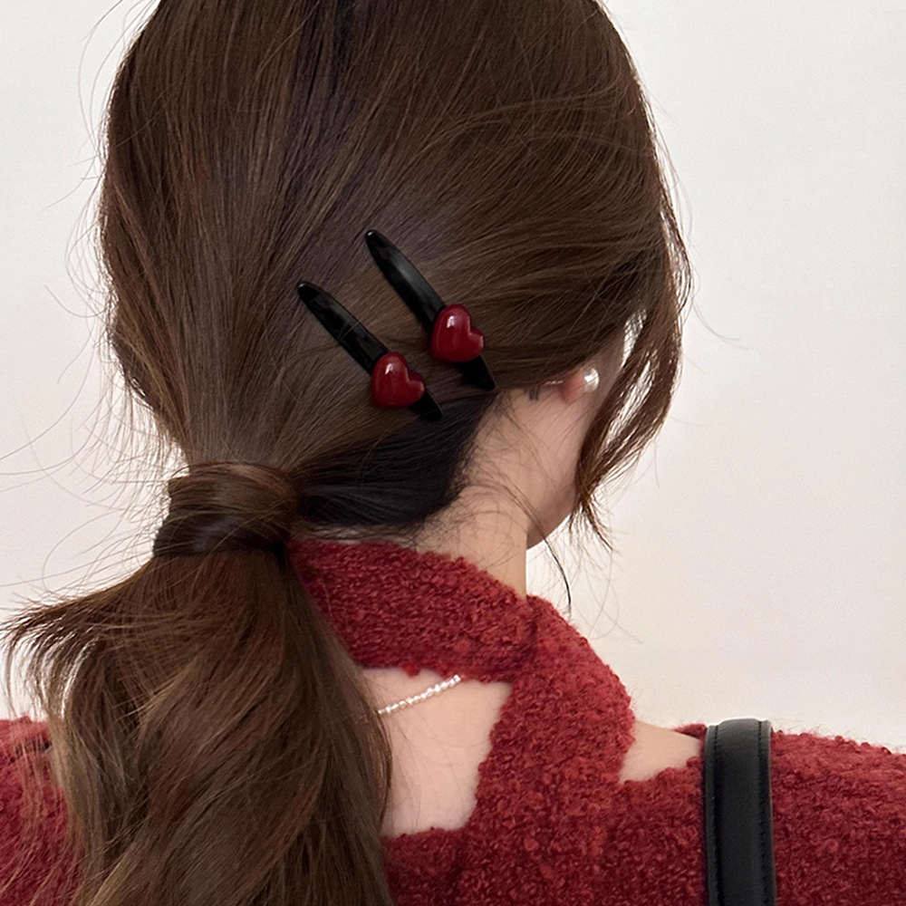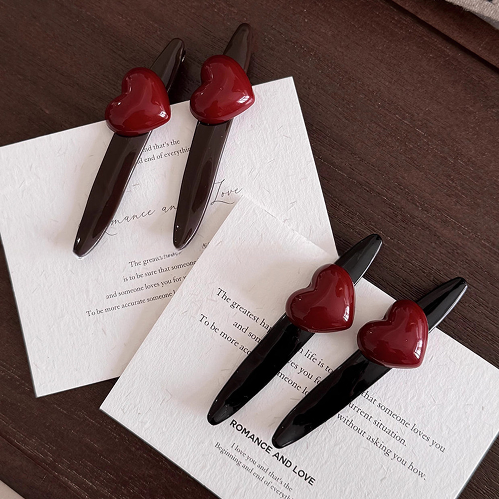 巧克力红色爱心发夹边夹侧边刘海夹法式复古高级感一字夹百搭发饰 English | 投诉