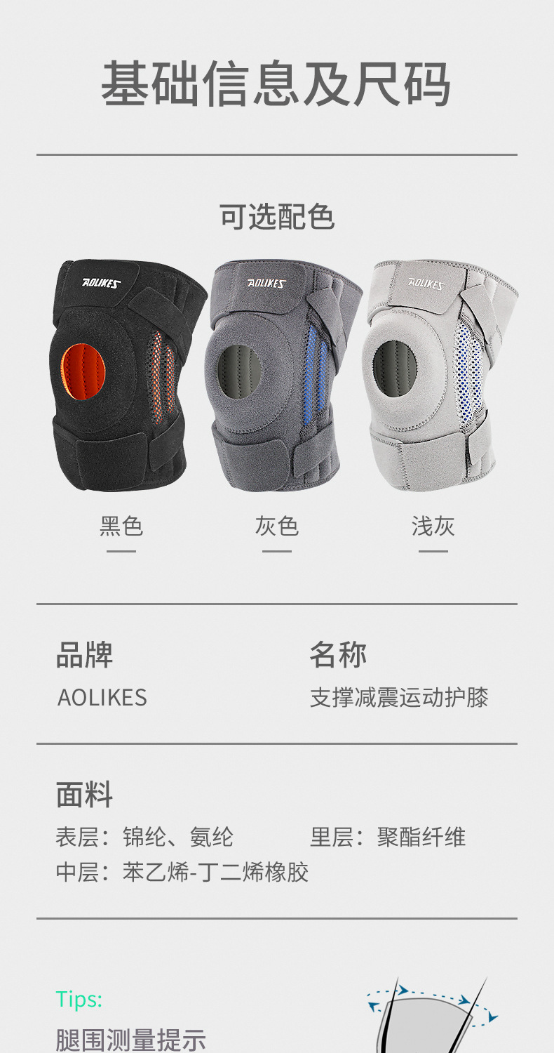 Aolikes运动护膝跑步健身户外骑行登山 弹簧护腿加压硅胶防滑护膝 投诉