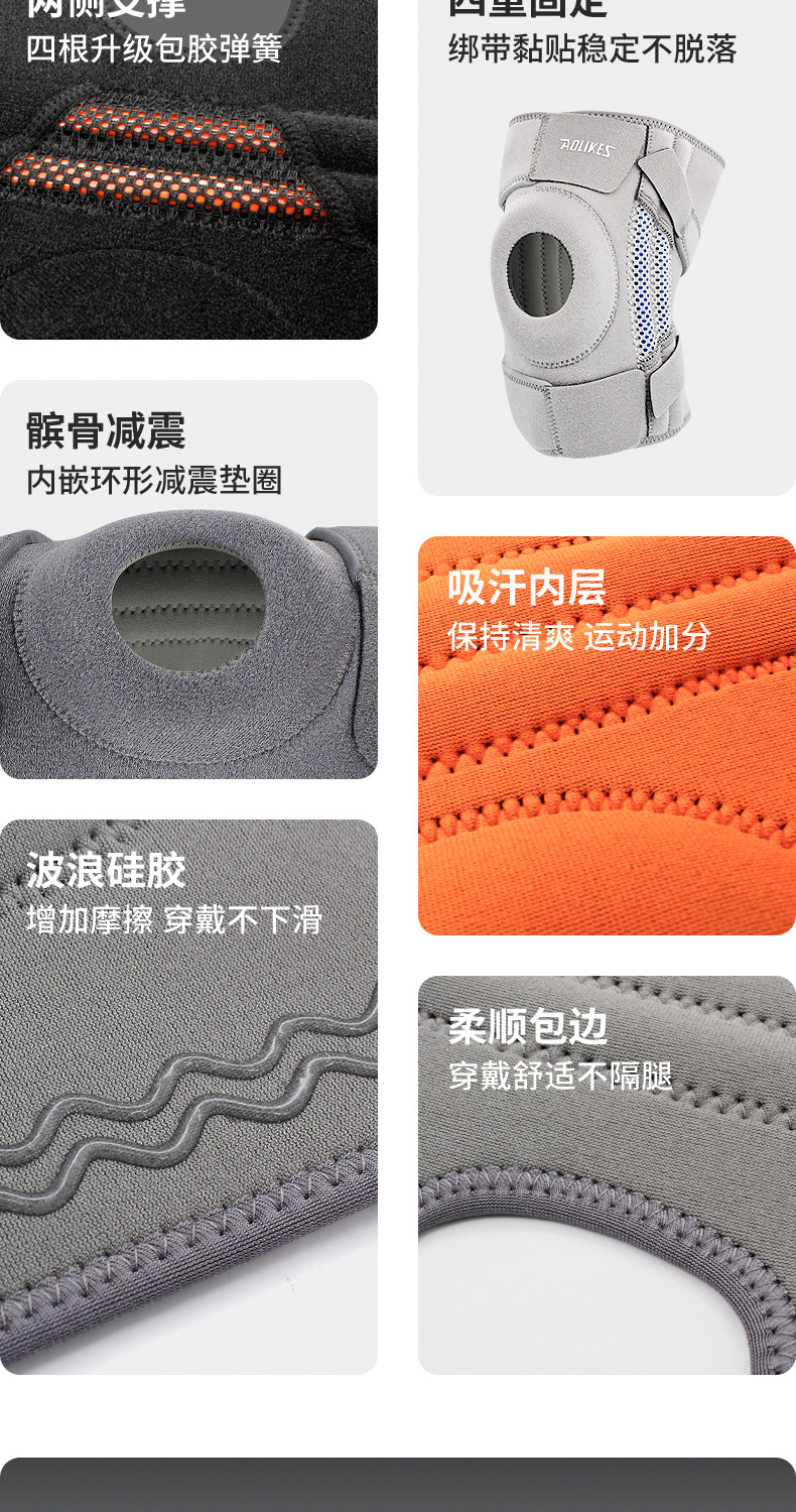 Aolikes运动护膝跑步健身户外骑行登山 弹簧护腿加压硅胶防滑护膝