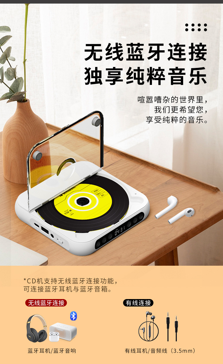 蓝牙cd机复读机轻薄随身听英语听力专辑CD迷你播放器家用音箱无线 English | 投诉