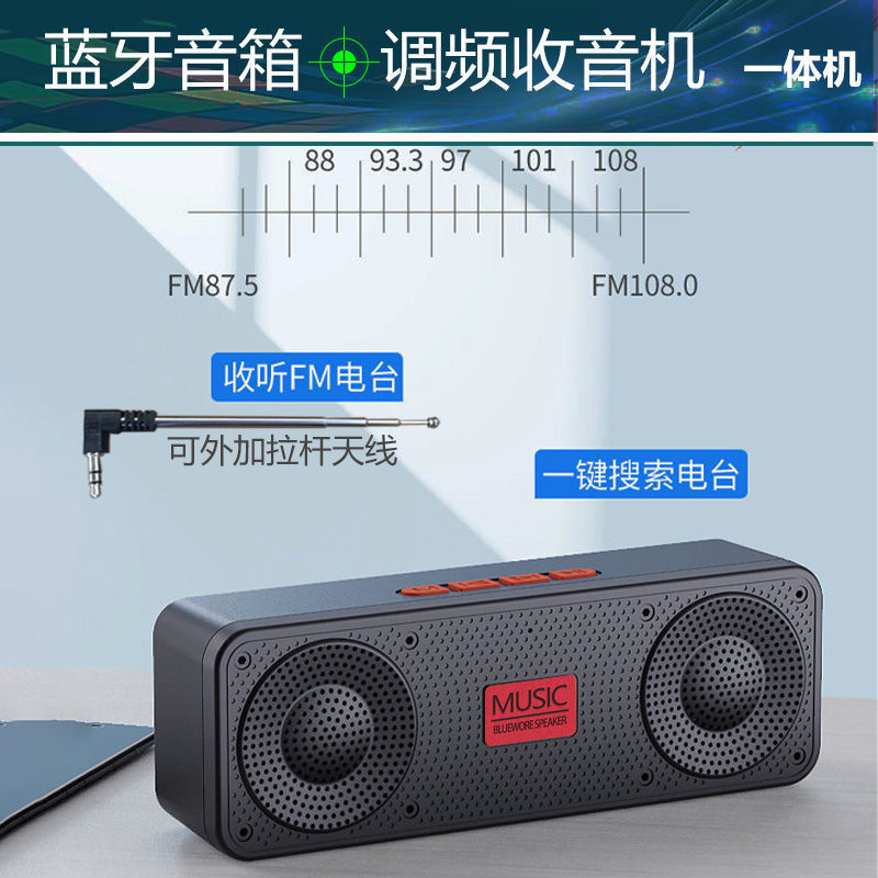 功 能:支持蓝牙连接、免提通话、TWS串联、TF卡、USB、FM收音、AUX(U盘,TF,最大支持32GB);