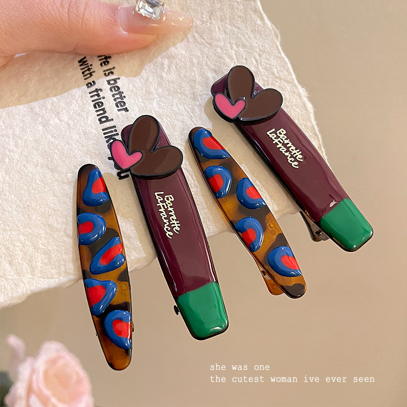 韩国东大门撞色爱心发夹女侧边刘海夹发卡子碎发鸭嘴夹子头饰发饰