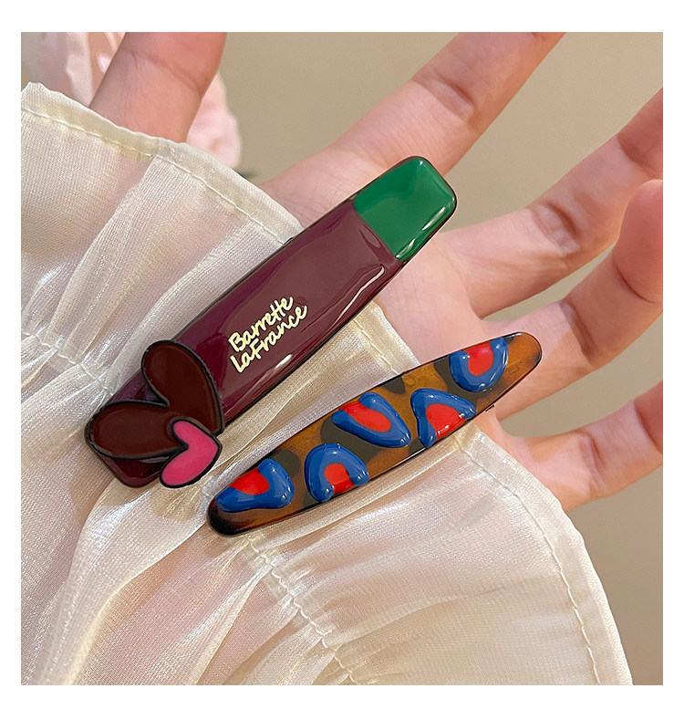 材质: 亚克力 货号: 6395-8 品牌: 雅漾 样式: 女式 处理工艺: 烤漆 发夹分类: 边夹 产地: 义乌 颜色: 爱心边夹1个,撞色点点边夹1个 有可授权的自有品牌: 是 是否跨境出口专供货源: 是 流行元素: -1 上市年份/季节: 2025夏季 是否有金属镀层: 无金属镀层 风格: 田园风 风格分类: 清新甜美 适用人群: 女式 镶嵌材质: 非镶嵌 流行元素分类: 形状/图案 重量: 0.05 kg/个