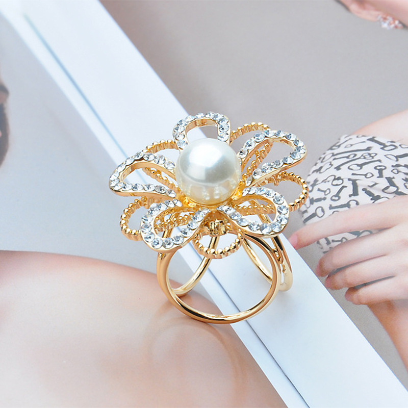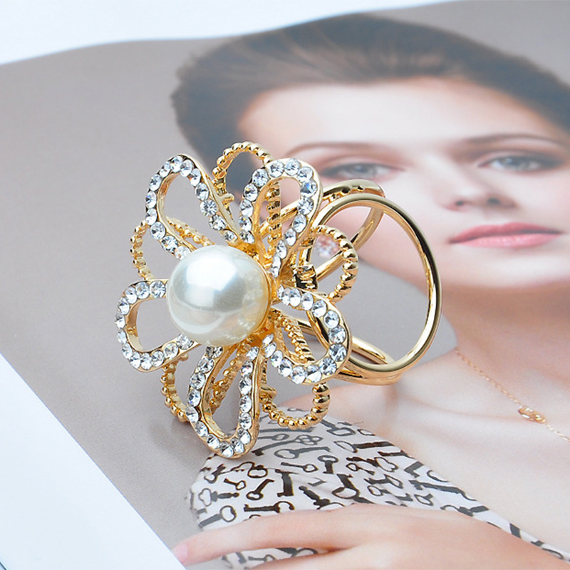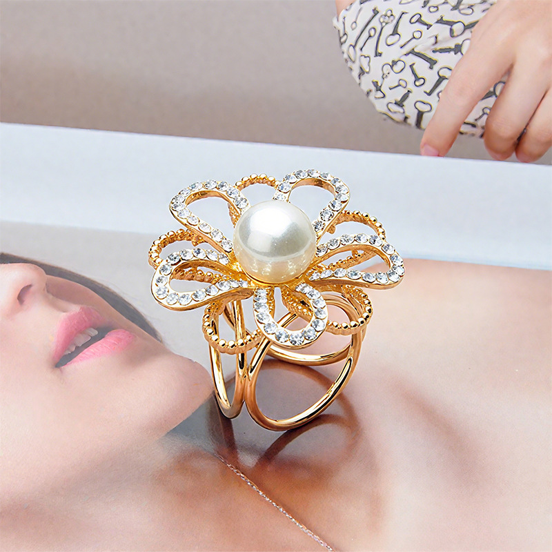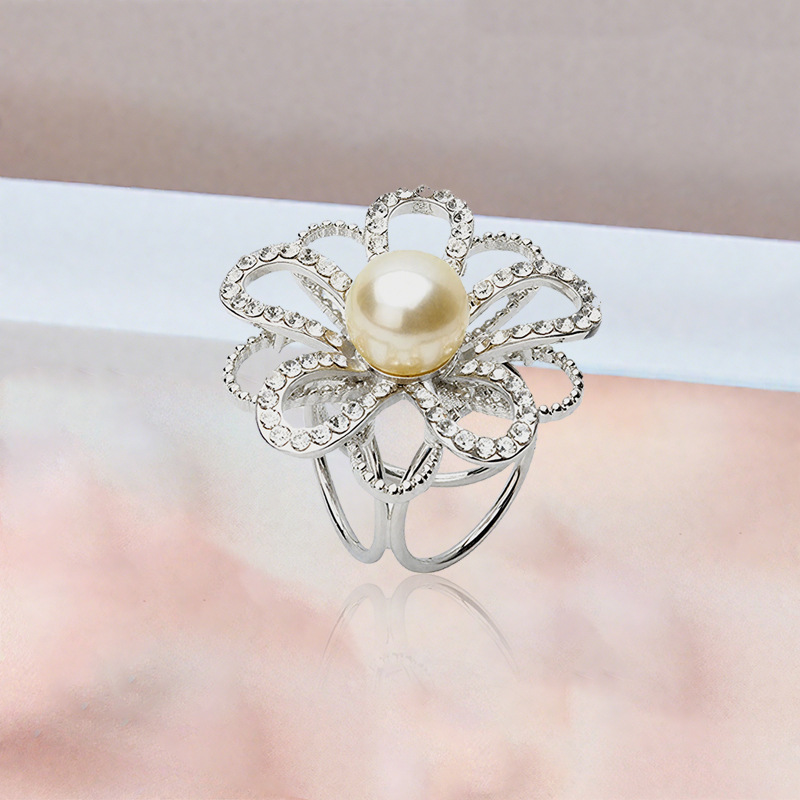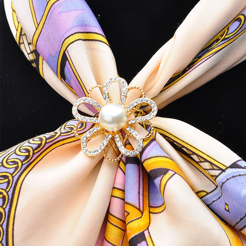 2025欧美热销简约珍珠花朵围巾扣水钻丝巾扣三环披肩扣两用女饰品 English | 投诉