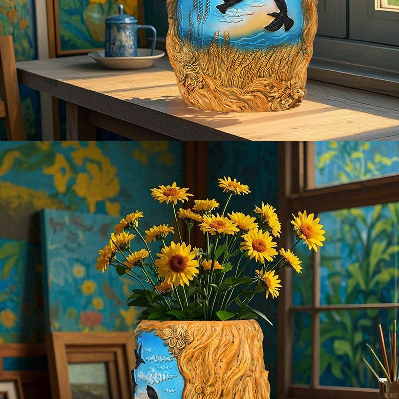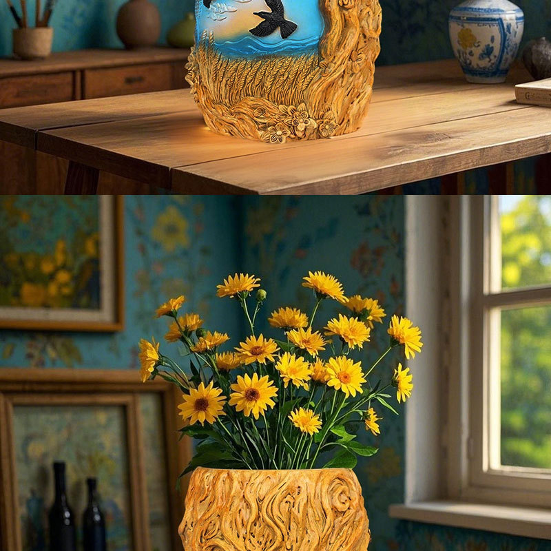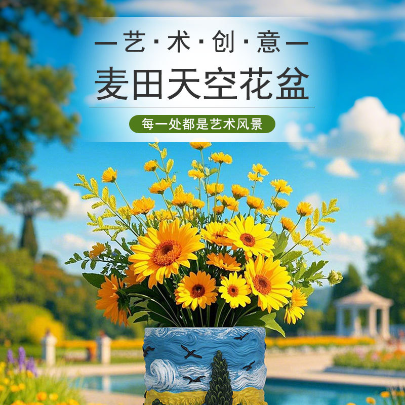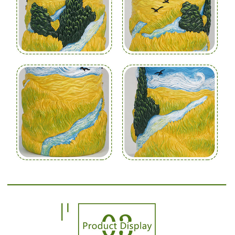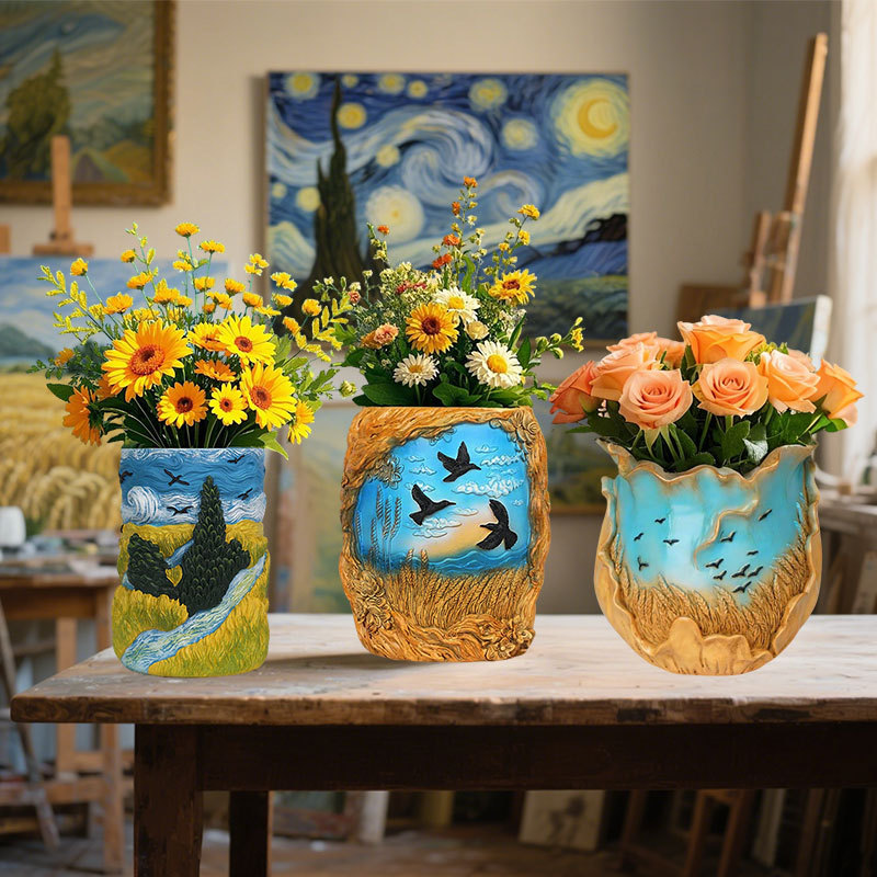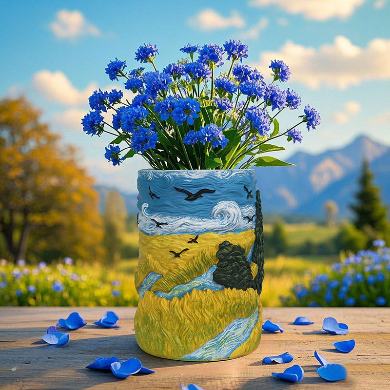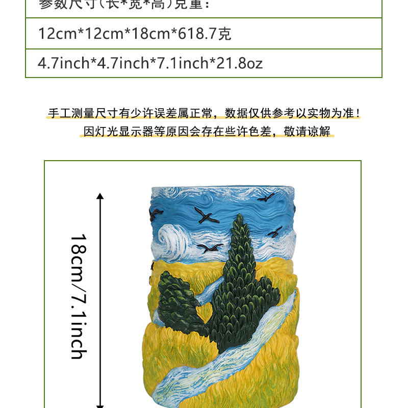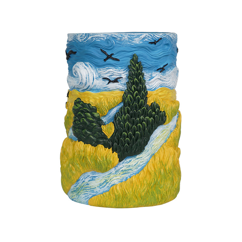 爆款梵高麦田艺术花盆立体彩绘工艺家居桌面装饰创意插花器摆件