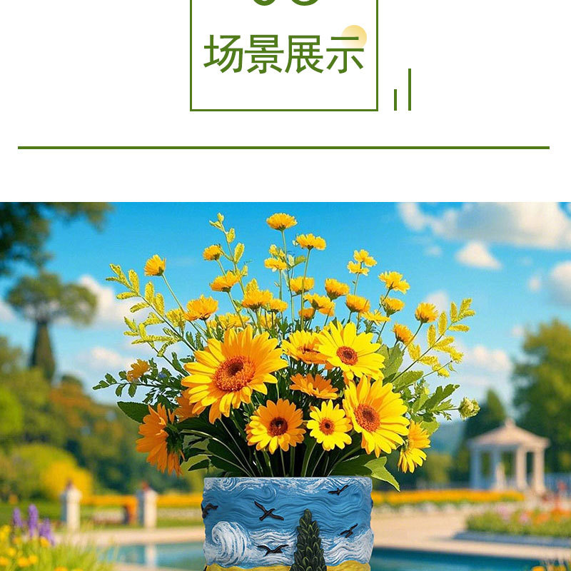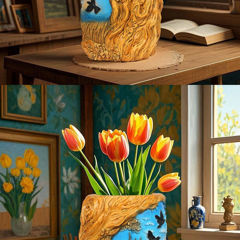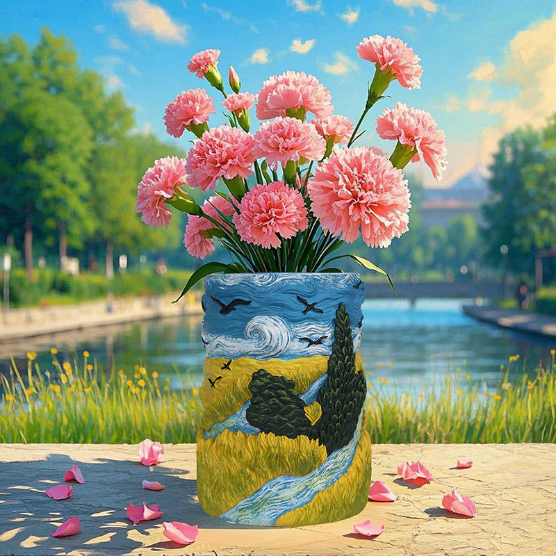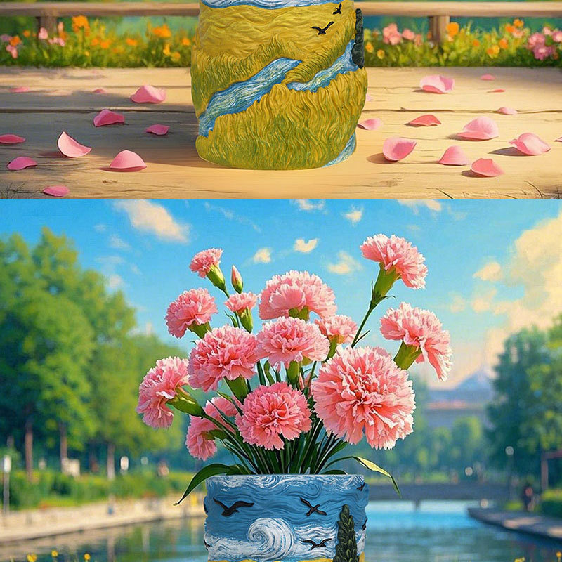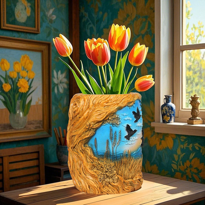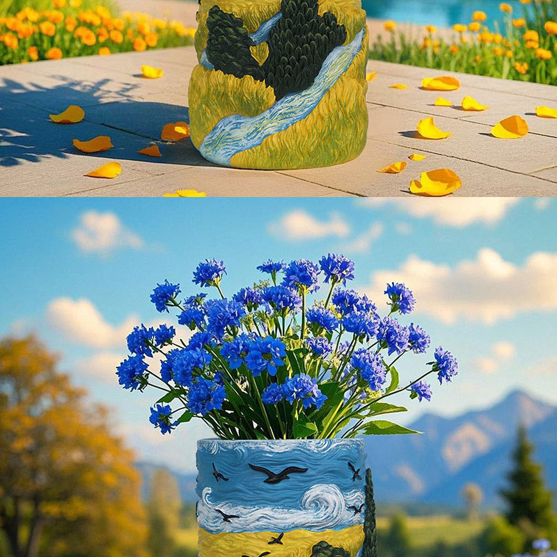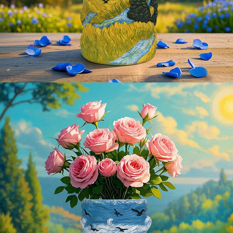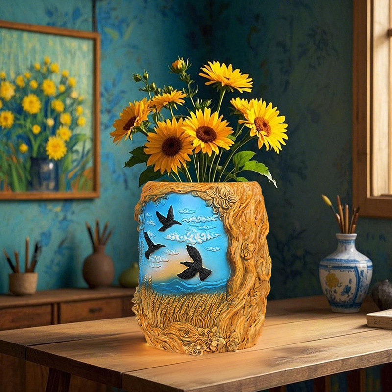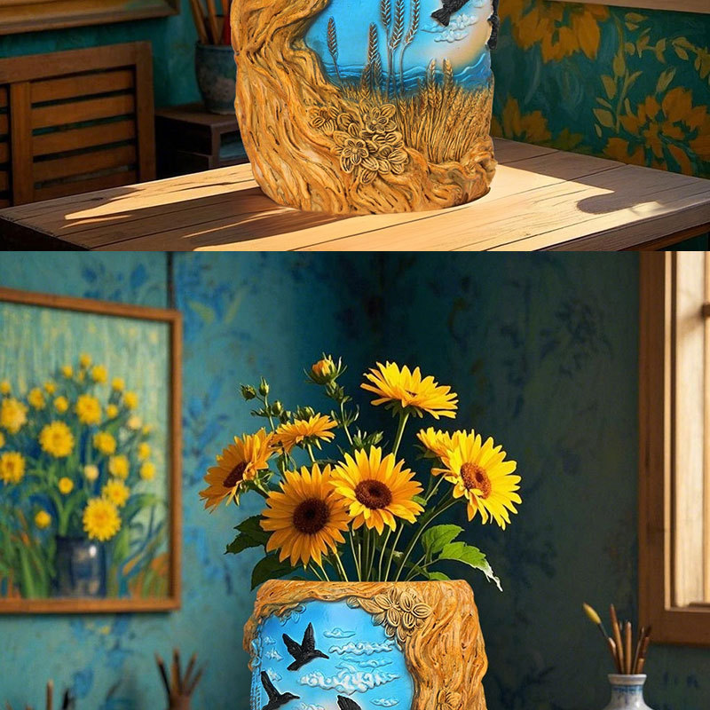 爆款梵高麦田艺术花盆立体彩绘工艺家居桌面装饰创意插花器摆件