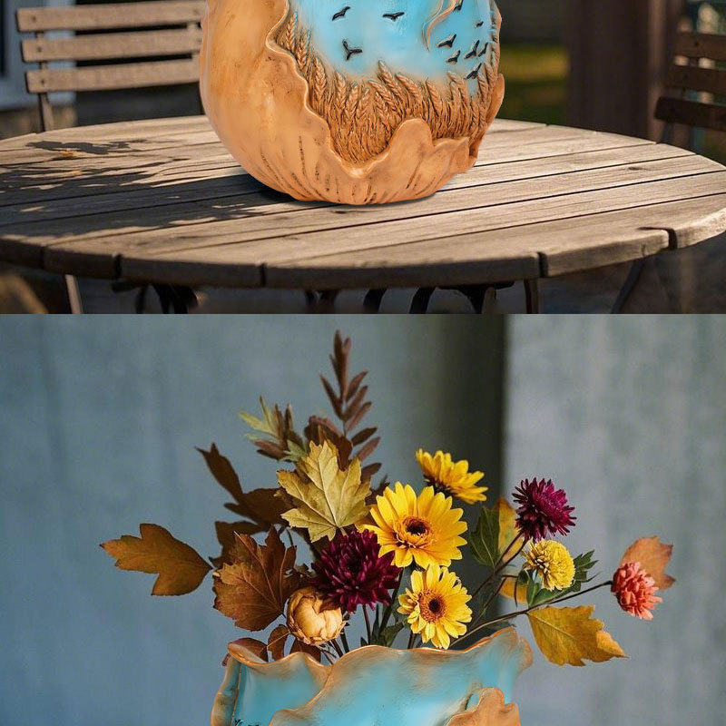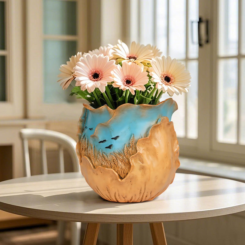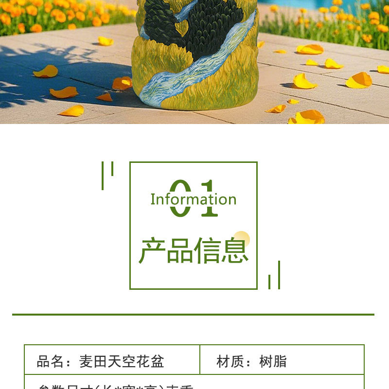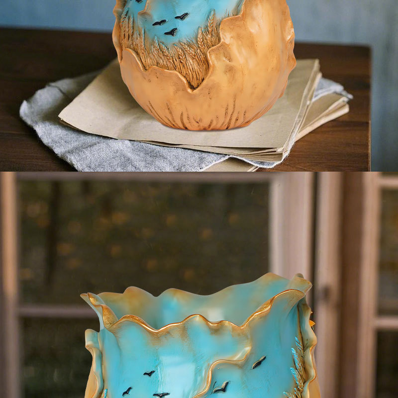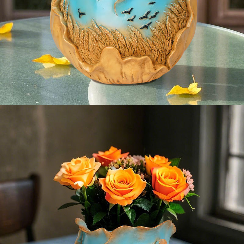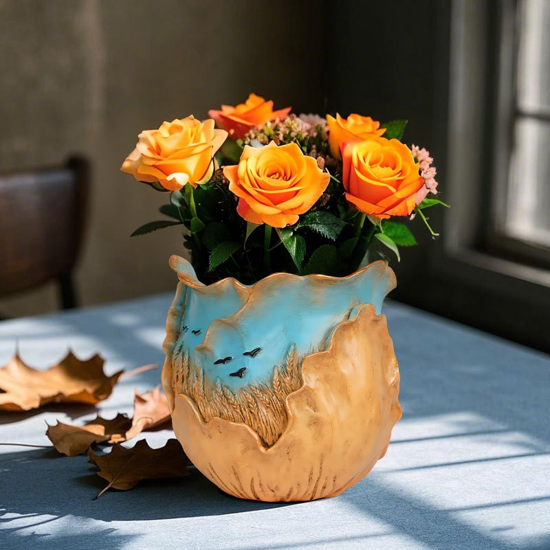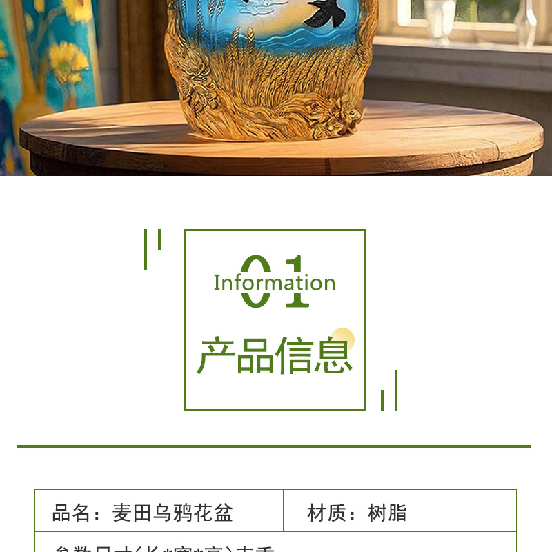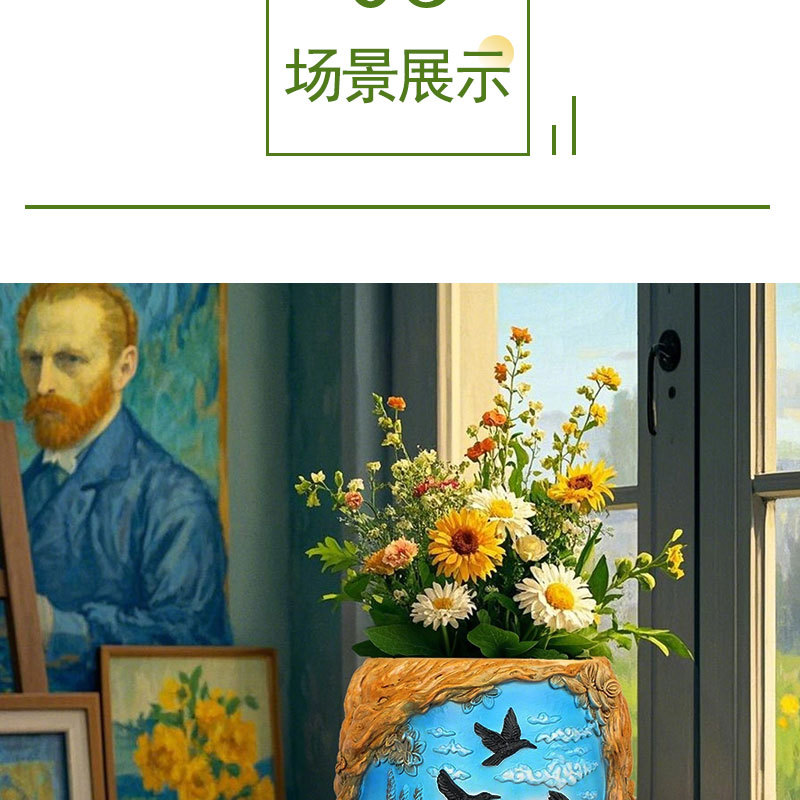 爆款梵高麦田艺术花盆立体彩绘工艺家居桌面装饰创意插花器摆件