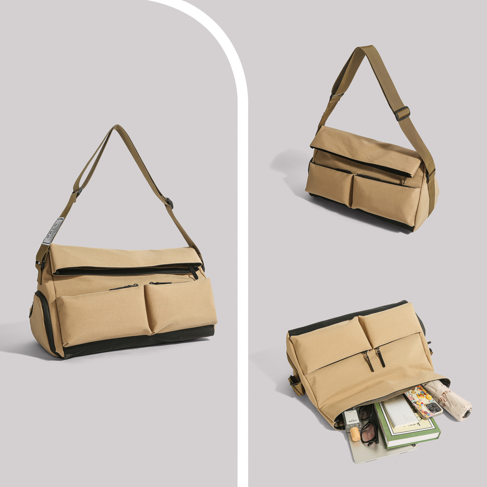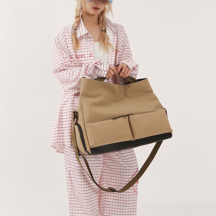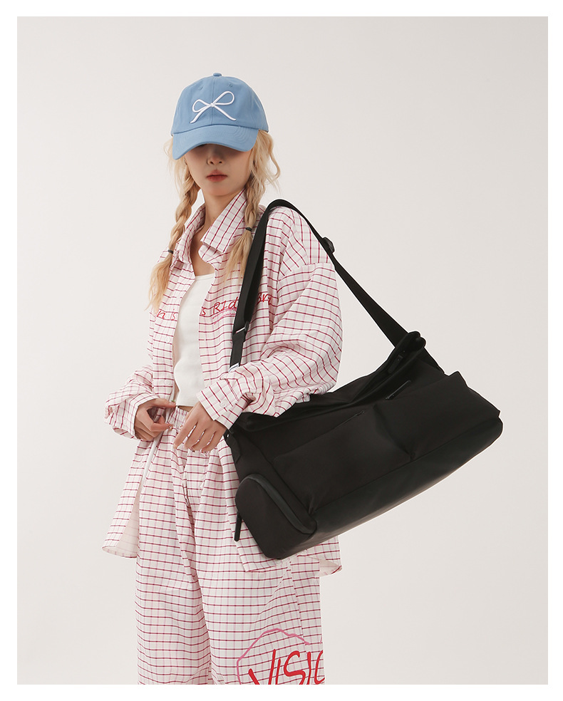 货号: 8936 容量: 20-35L 材质: 尼龙 功能: 干湿分离 品牌: .. 适用性别: 中性/男女均可 里料质地: 涤纶 图案: 纯色 风格: 休闲旅行 流行元素: 其他 颜色: 卡其色,白色,黑色 有可授权的自有品牌: 否 上市年份季节: 2025年春季 适用场景: 休闲旅行