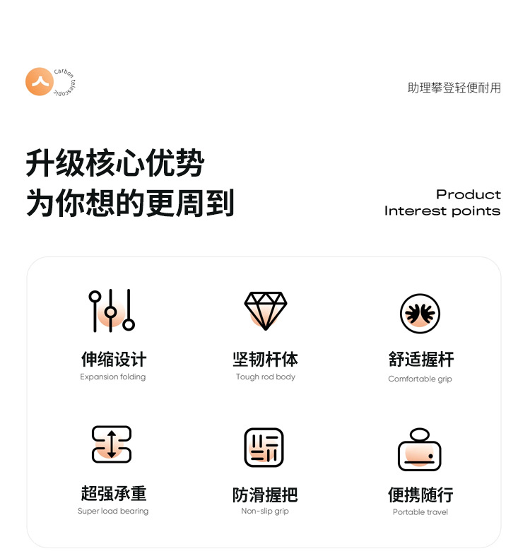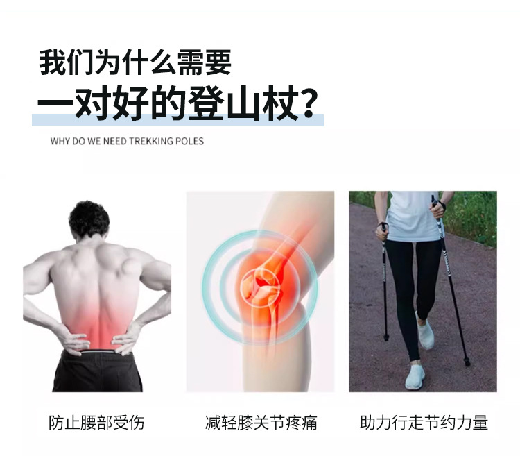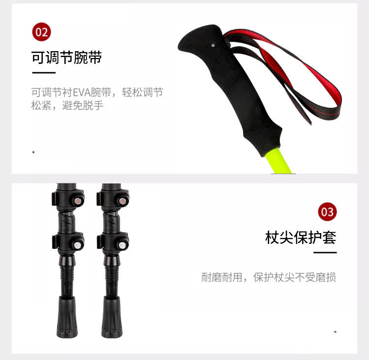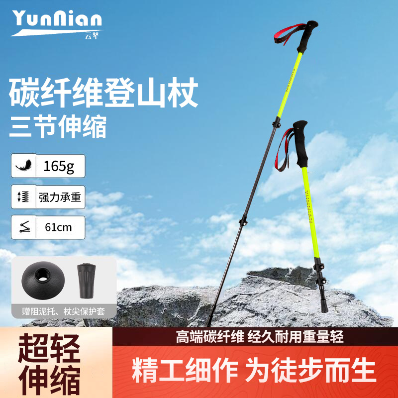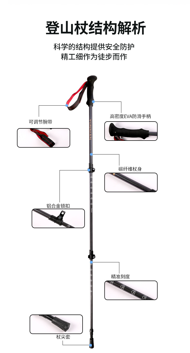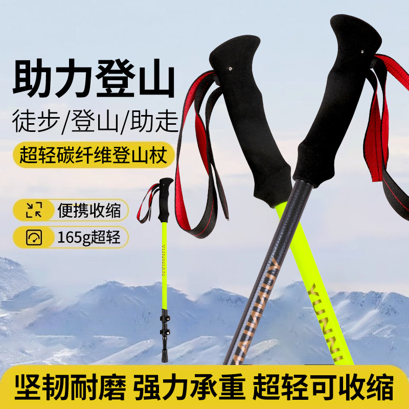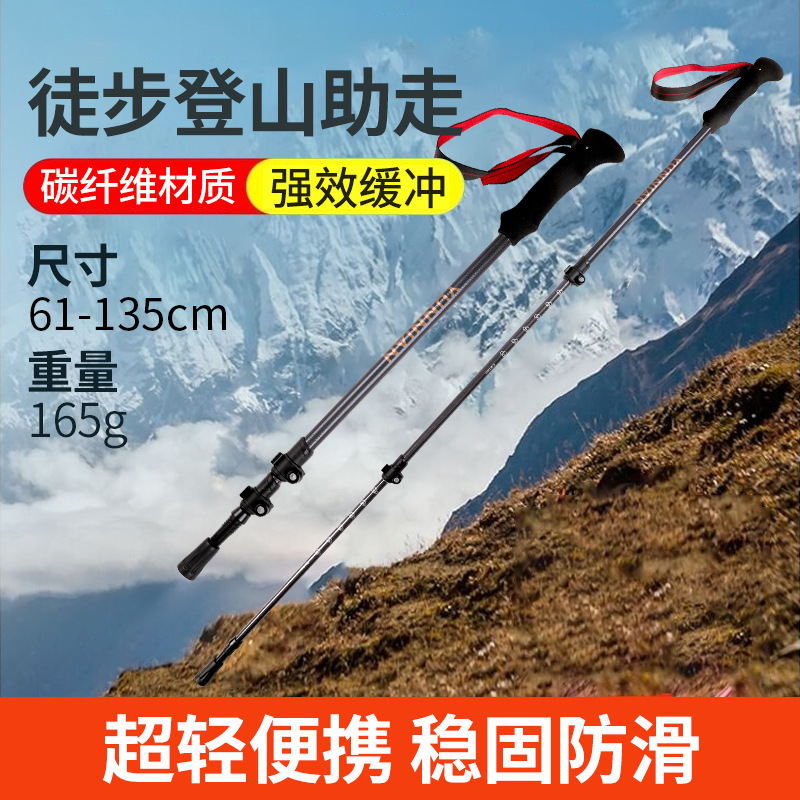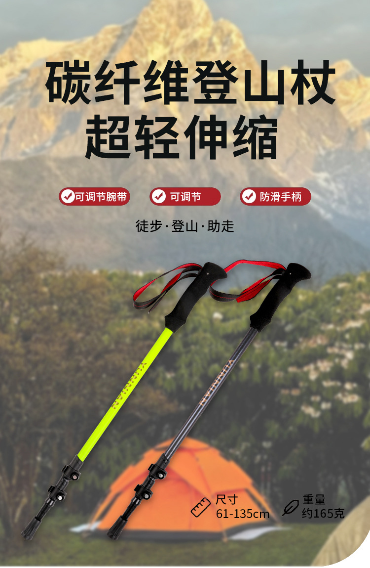 新款现货登山杖碳纤维伸缩手杖徒步爬山杖三节轻量外锁伸缩杆支架 English | 投诉