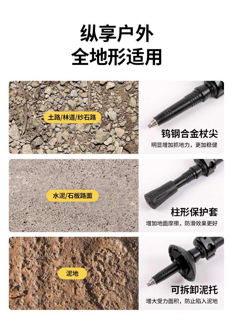 新款现货登山杖碳纤维伸缩手杖徒步爬山杖三节轻量外锁伸缩杆支架