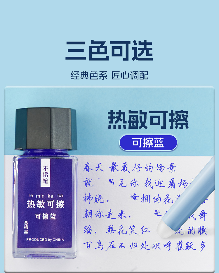 热敏可擦墨水瓶装不堵笔摩易擦可擦钢笔墨水可擦晶蓝黑色墨蓝色 投诉