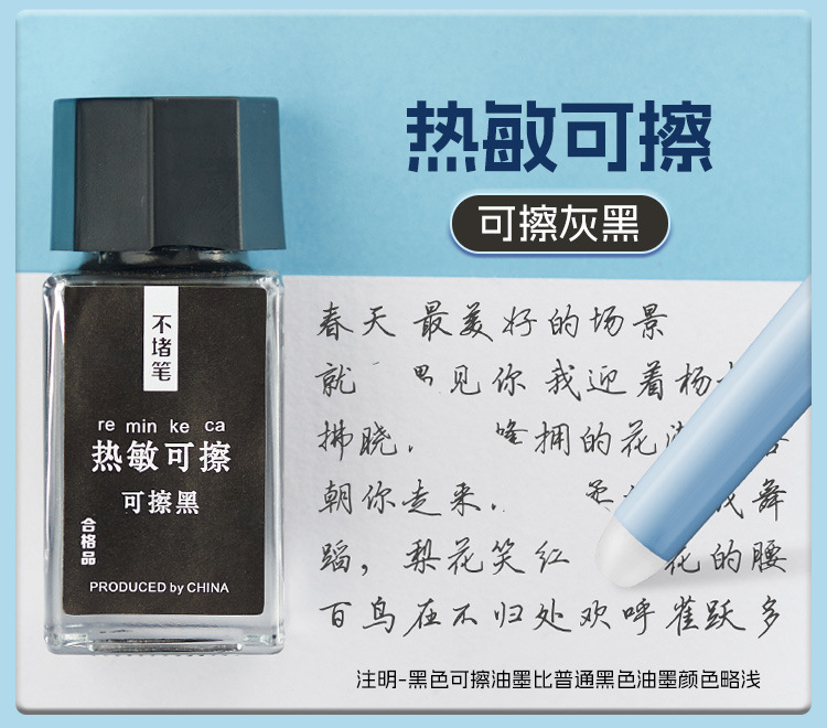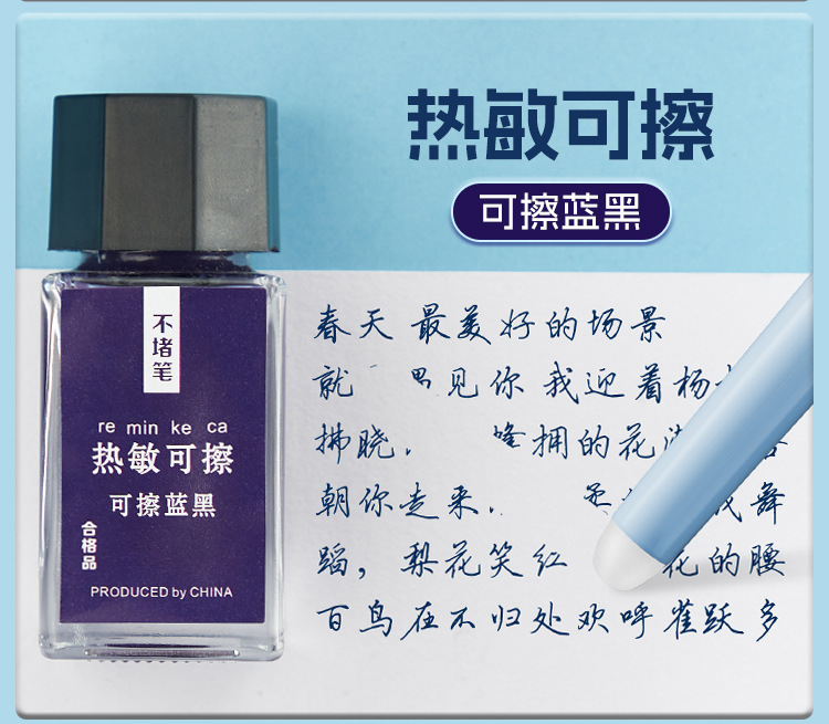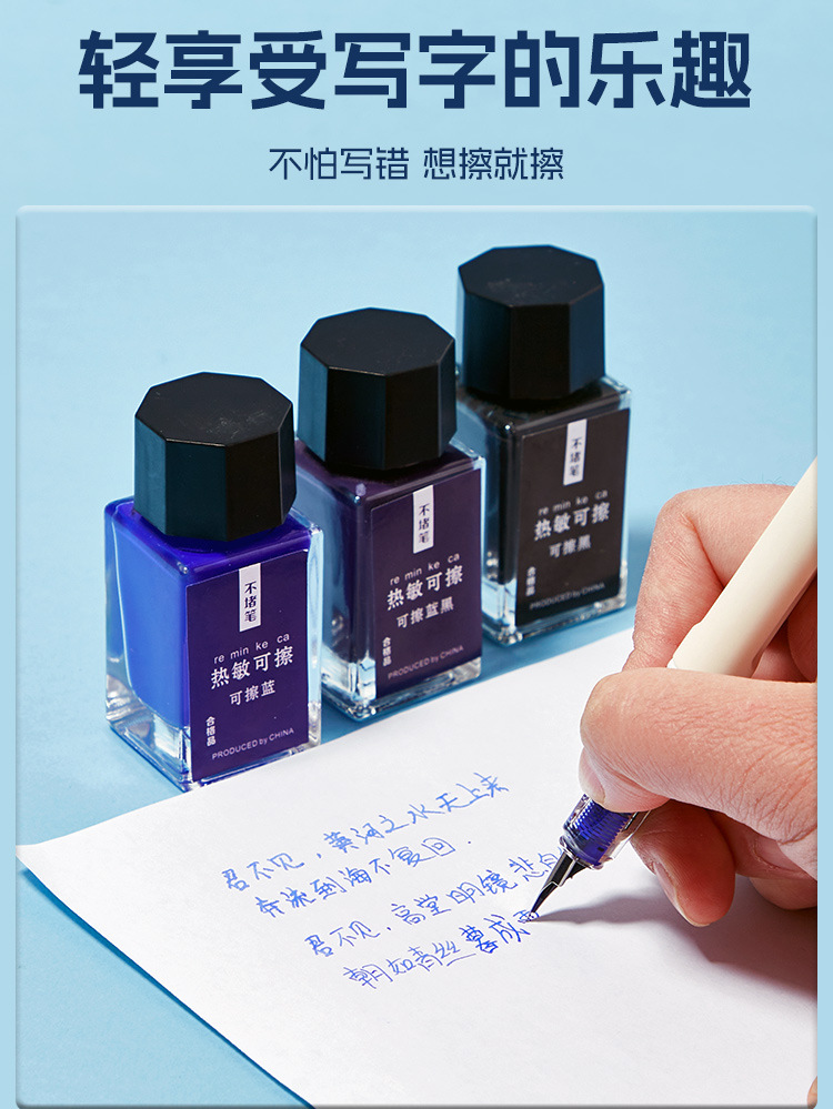 热敏可擦墨水瓶装不堵笔摩易擦可擦钢笔墨水可擦晶蓝黑色墨蓝色
