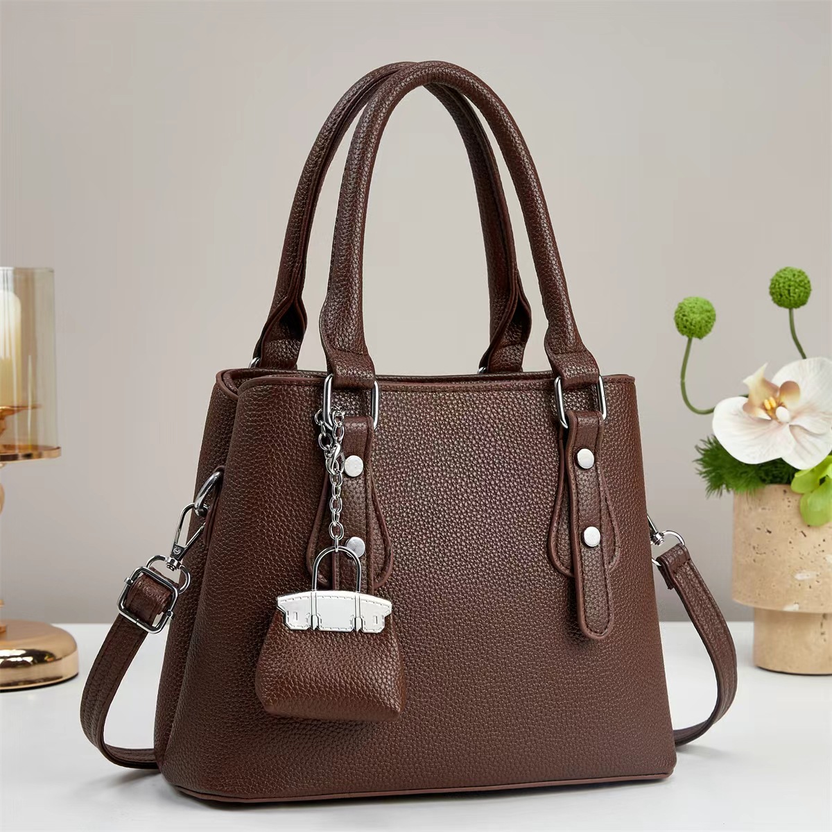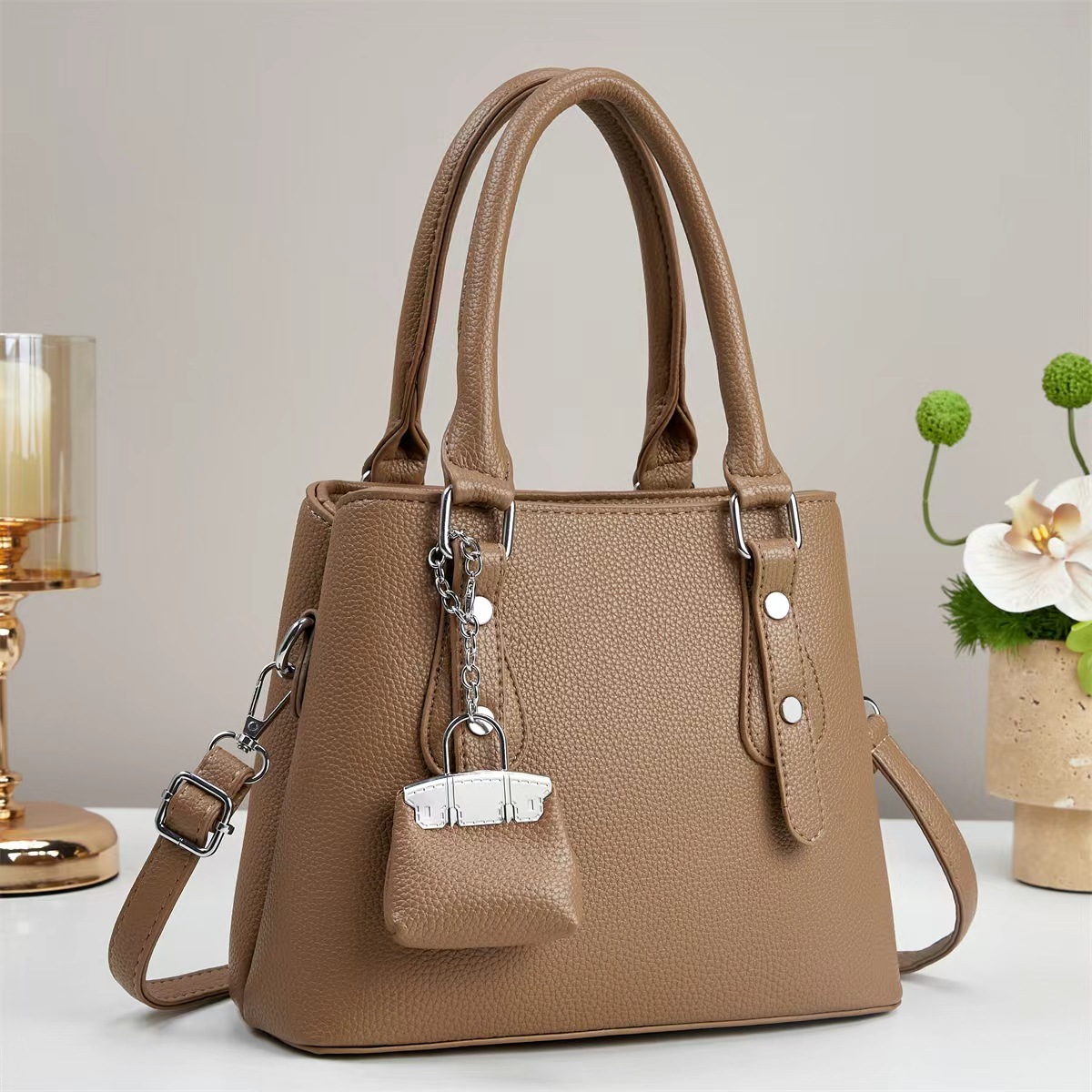 颜色: 黑色,紫色,卡其,灰色,土黄,米白,咖啡 风格: 都市简约 货号: A96565 材质: PU革 箱包潮流款式: 手提包 箱包大小: 中 流行元素: 其他 上市年份季节: 2025年春季 里料质地: 涤纶 箱包形状: 竖款方型 开盖方式: 拉链 包内部结构: 夹层拉链袋 硬度: 中 外袋种类: 内贴袋 品牌: 帝犀 有可授权的自有品牌: 是 有无夹层: 有 适用场景: 日常搭配 肩带根数: 单根 重量: 0.4 kg/个