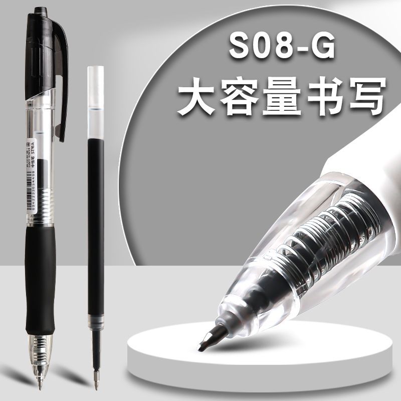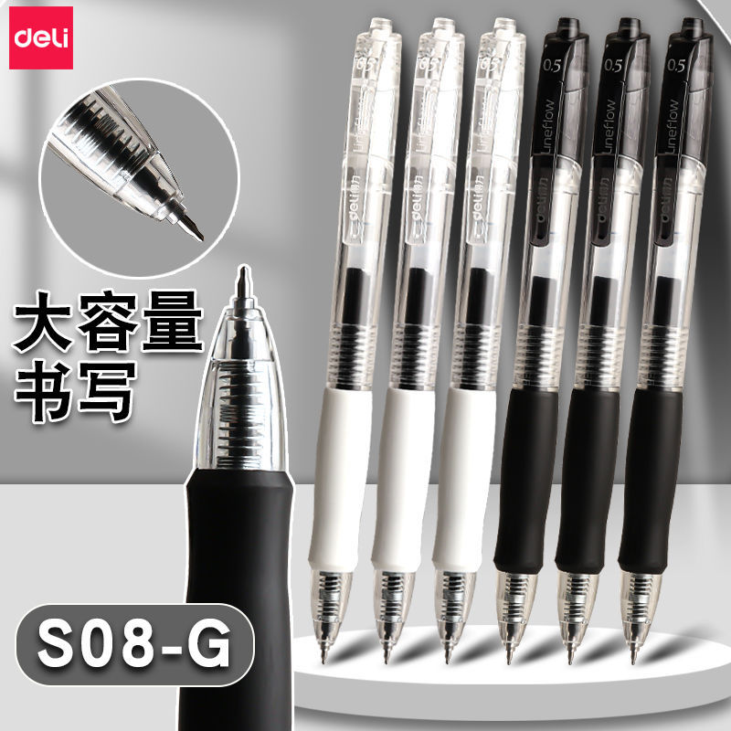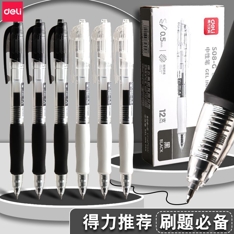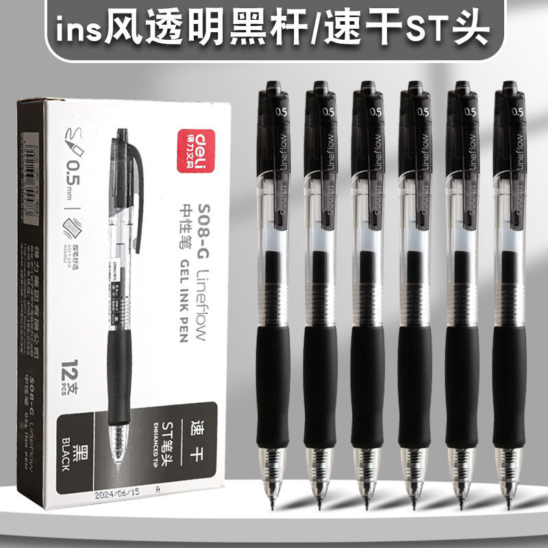得力简约按动中性笔ins速干黑色ST头大容量学生用笔考试办公0.5黑