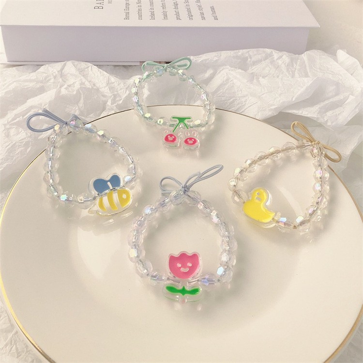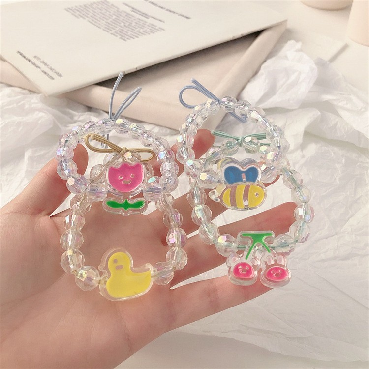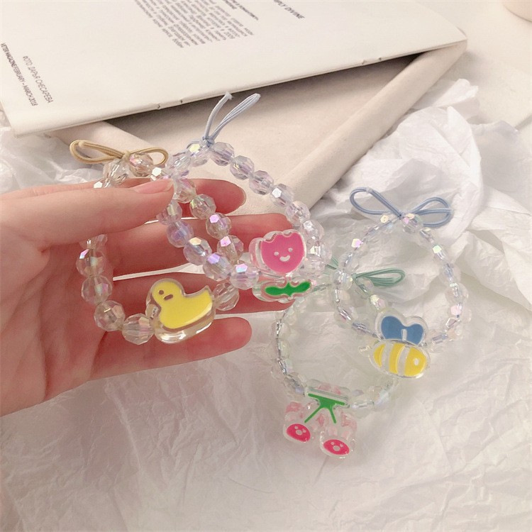 可爱玫瑰花发绳小黄鸭皮筋女低马尾水钻发圈清新甜美日系少女头饰