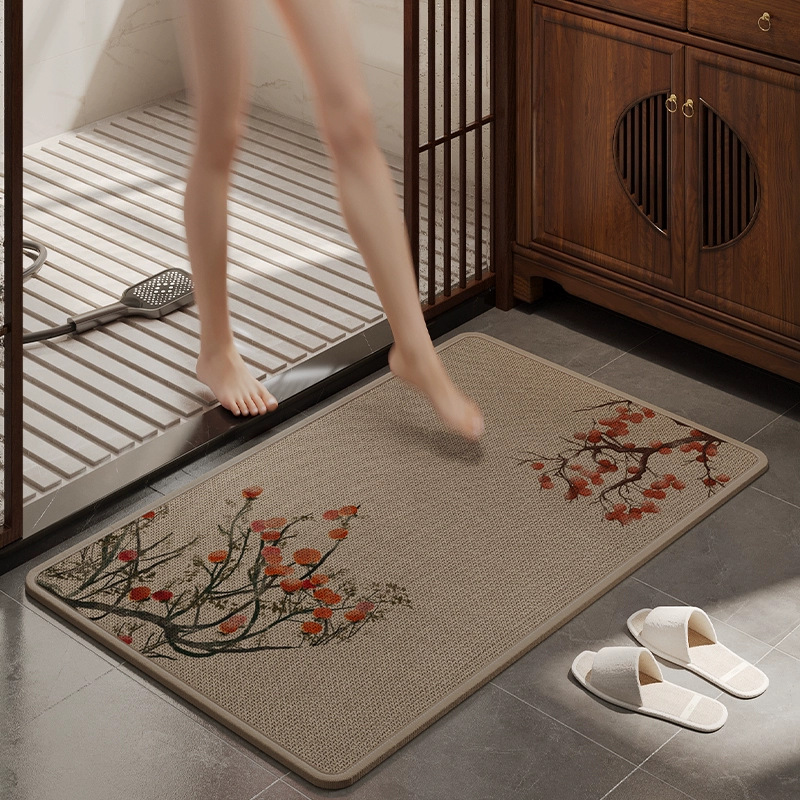 中古风浴室地垫、萨丽麻橡胶底-荔枝多多、萨丽麻橡胶底-柿子多多