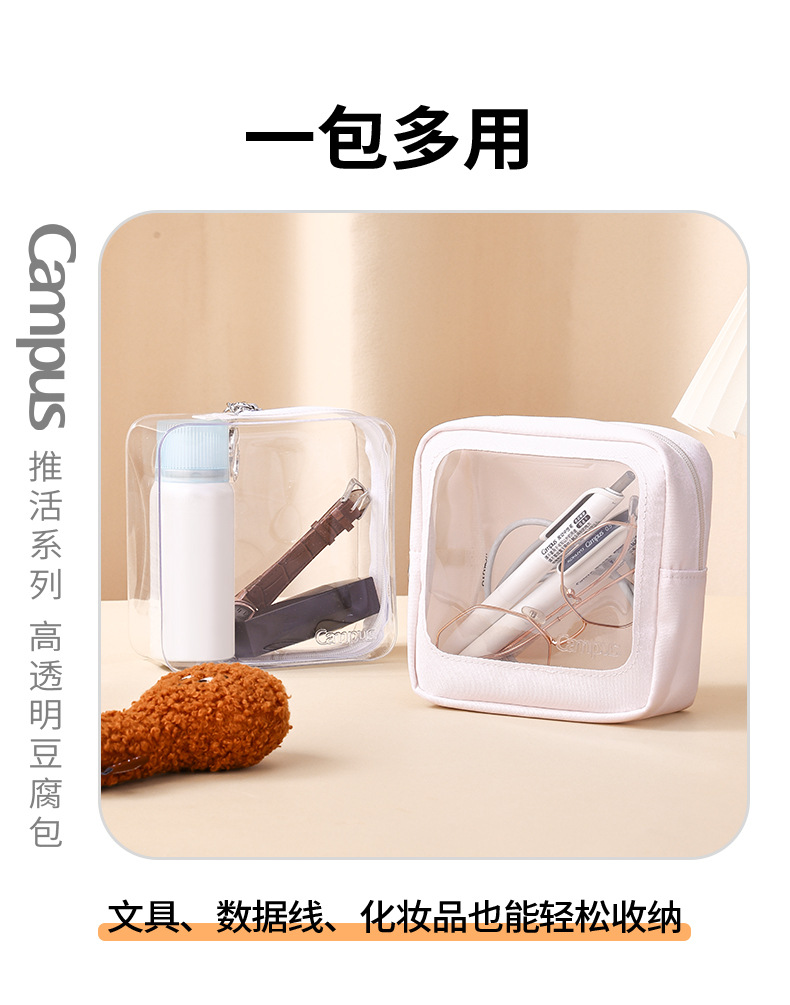 日本KOKUYO国誉Campus高透明豆腐包笔袋吧唧痛包化妆品收纳挂件