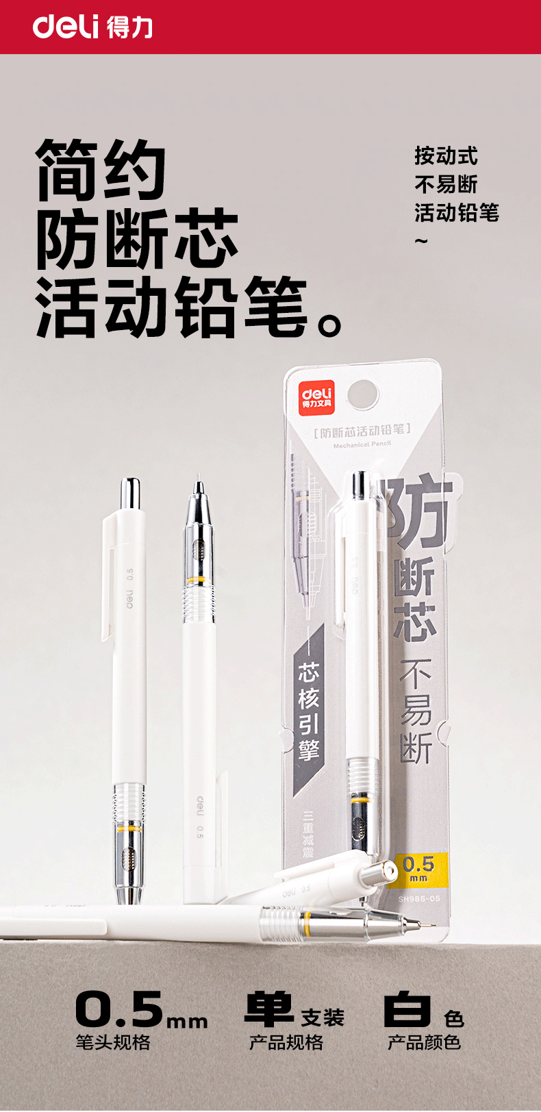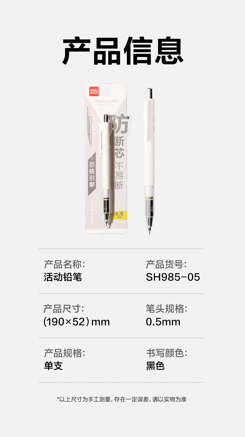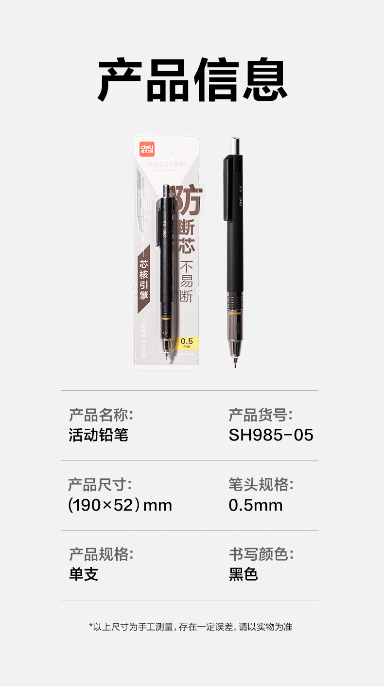 得力SH985核引擎活动铅笔0.5自动铅笔不断芯学生文具小学生初中生 投诉