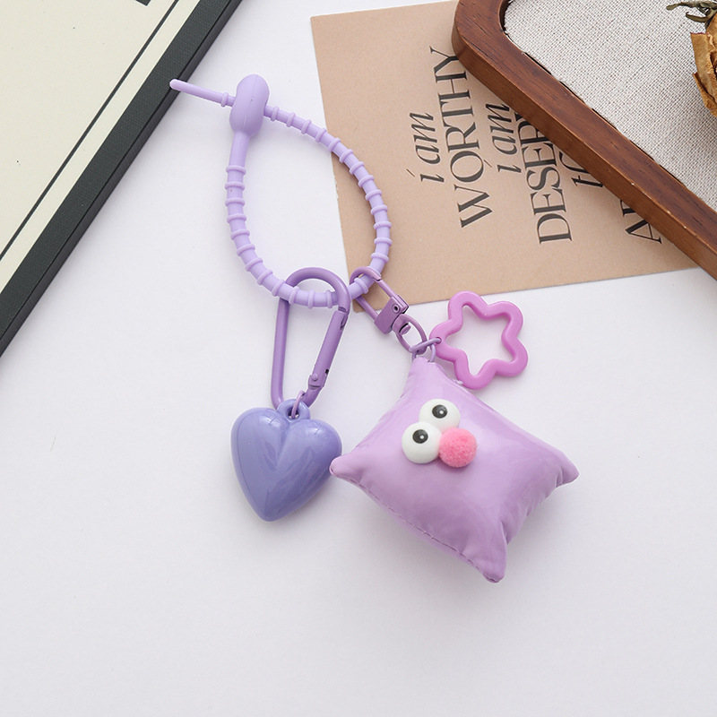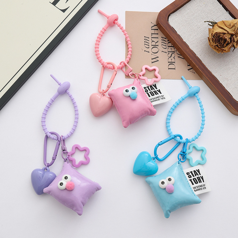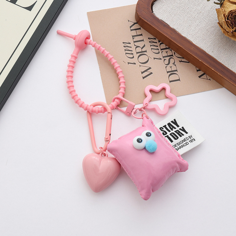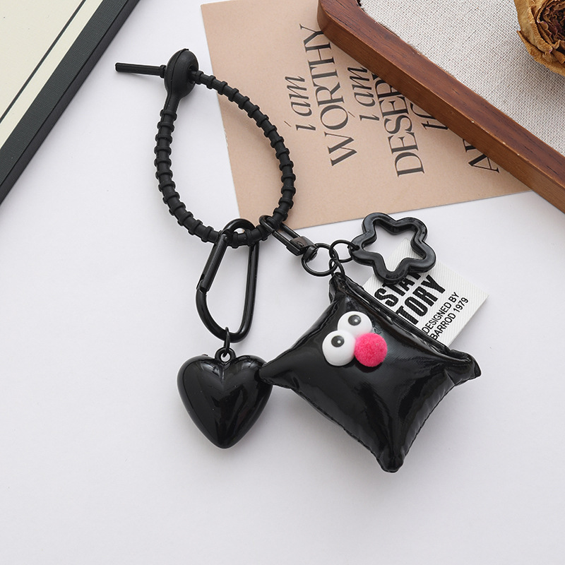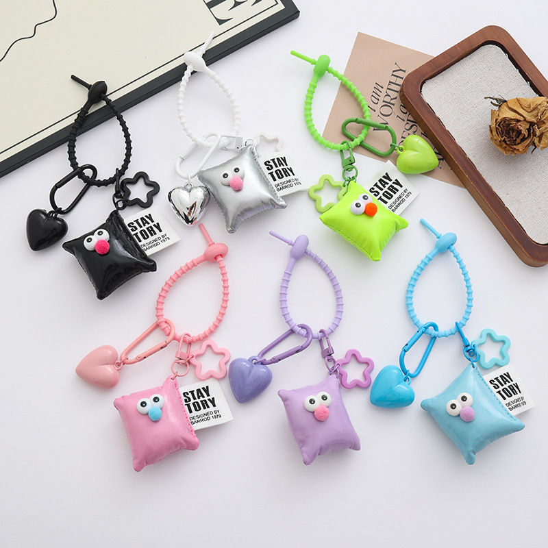 新款个性多巴胺大桃心钥匙扣挂件ins风皮革眼睛方块背包饰品挂件