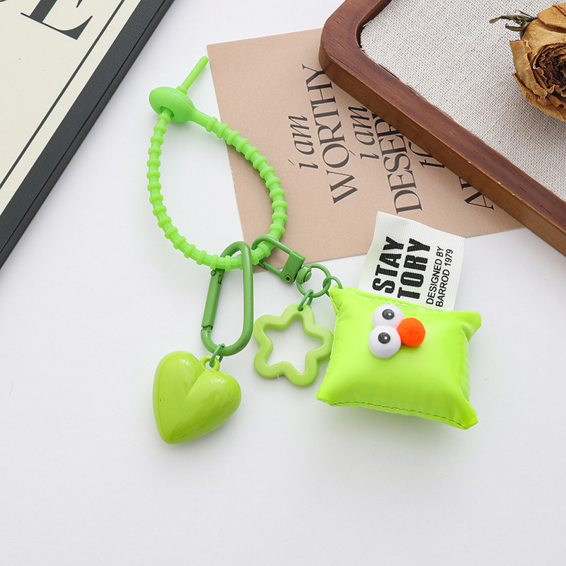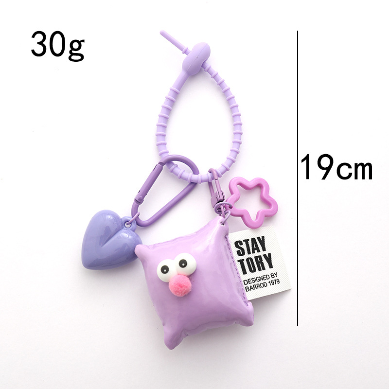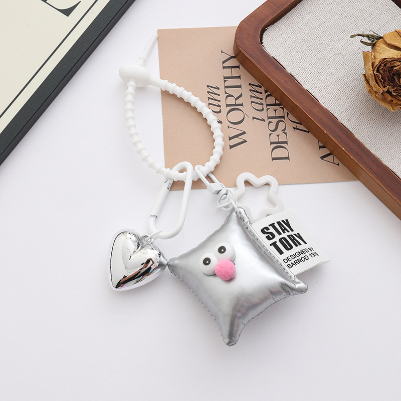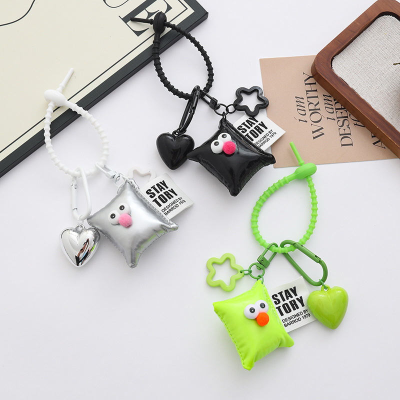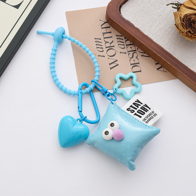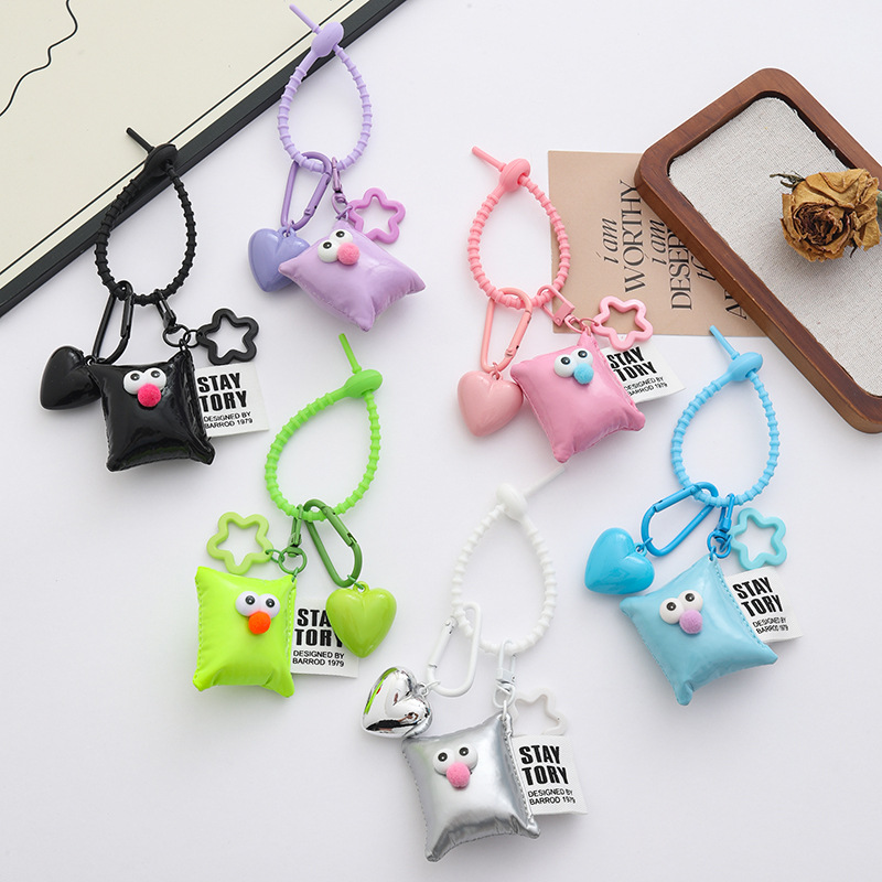 新款个性多巴胺大桃心钥匙扣挂件ins风皮革眼睛方块背包饰品挂件