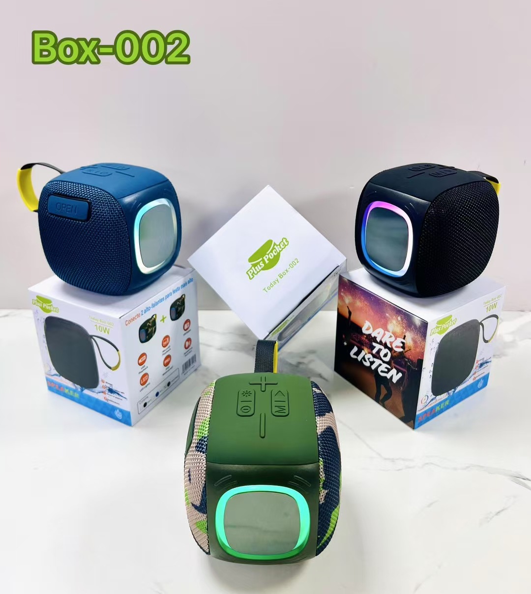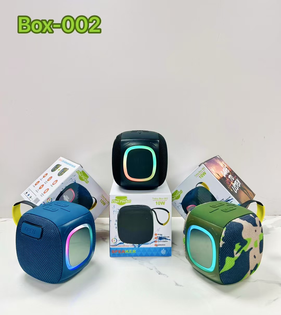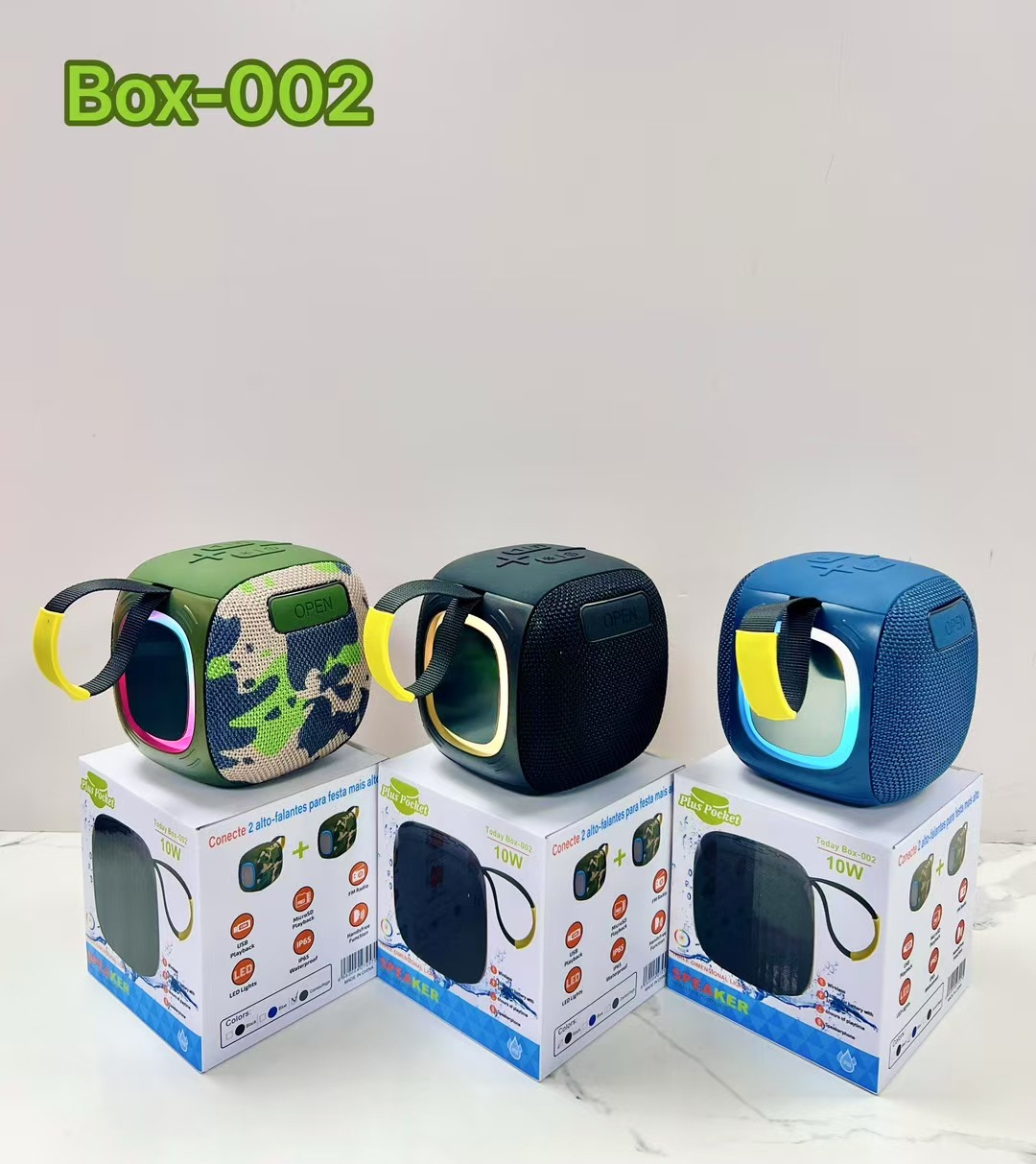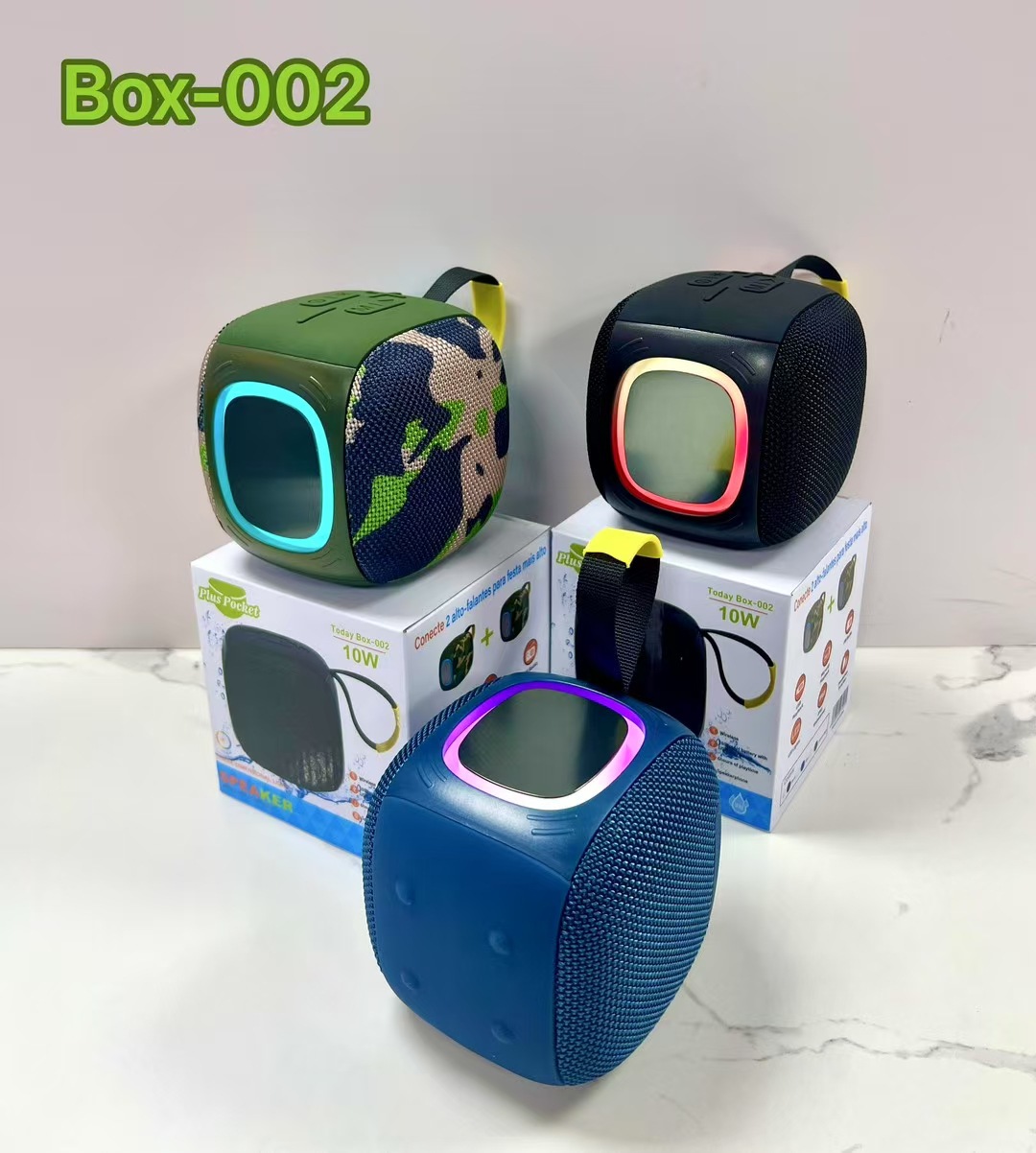 外贸新款BOX-002蓝牙音箱便携式户外手提小音响TWS带灯超重低音炮