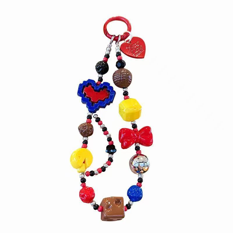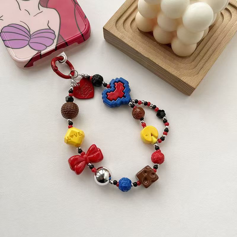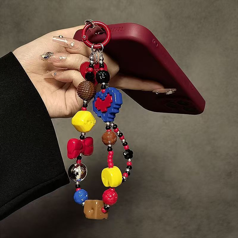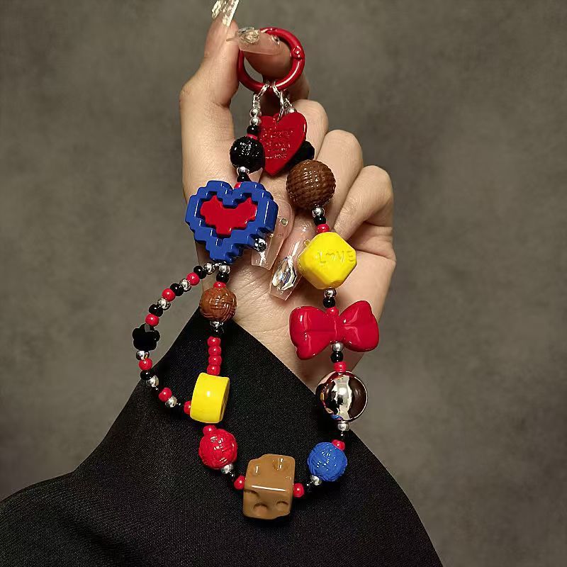 ins撞色爱心芭比手链手腕挂绳链条辣妹气质手机相机包包钥匙挂件 English | 投诉