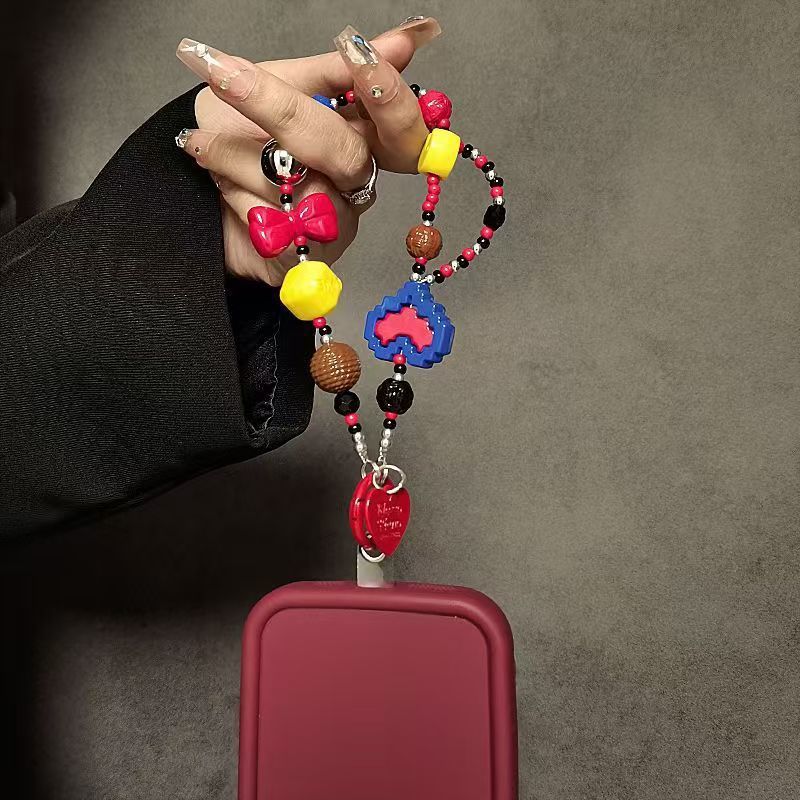 ins撞色爱心芭比手链手腕挂绳链条辣妹气质手机相机包包钥匙挂件