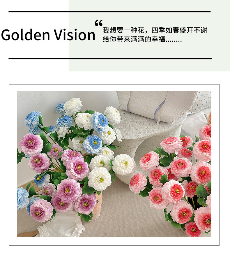 龙鲤牡丹仿真花芍药绢花餐桌客厅装饰摆件婚庆礼堂插花艺拍摄道具 English | 投诉