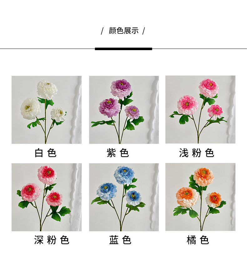 品牌: 康信 货号: 龙鲤牡丹 材质: 绢花 加工定制: 否 工艺: 19097788343 是否专利货源: 否 颜色: 白色,橘色,蓝色,浅粉色,深粉色,紫色 品种: 31125 用途: 婚庆,户外,摄影道具,家居装扮 重量: 0.213 kg/枝
