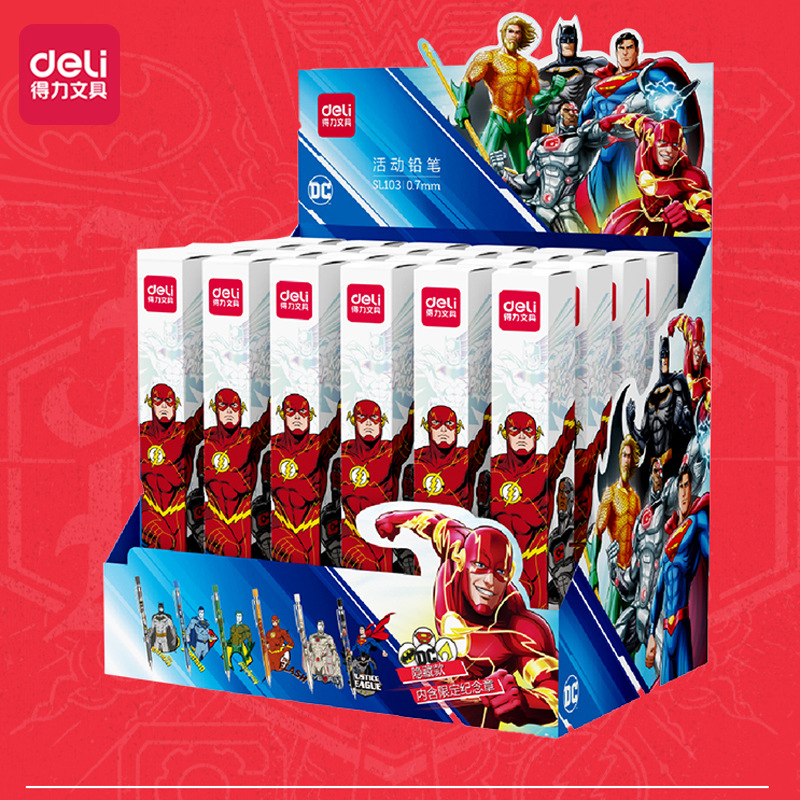 得力SL102/SL103正义联盟盲盒活动铅笔 学生书写带橡皮头自动铅笔