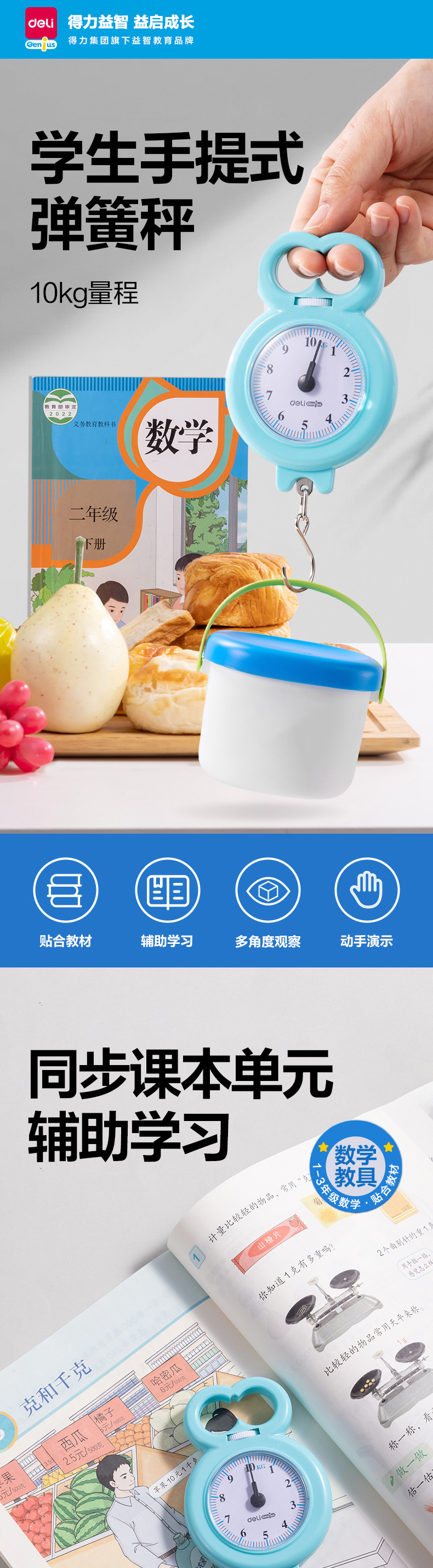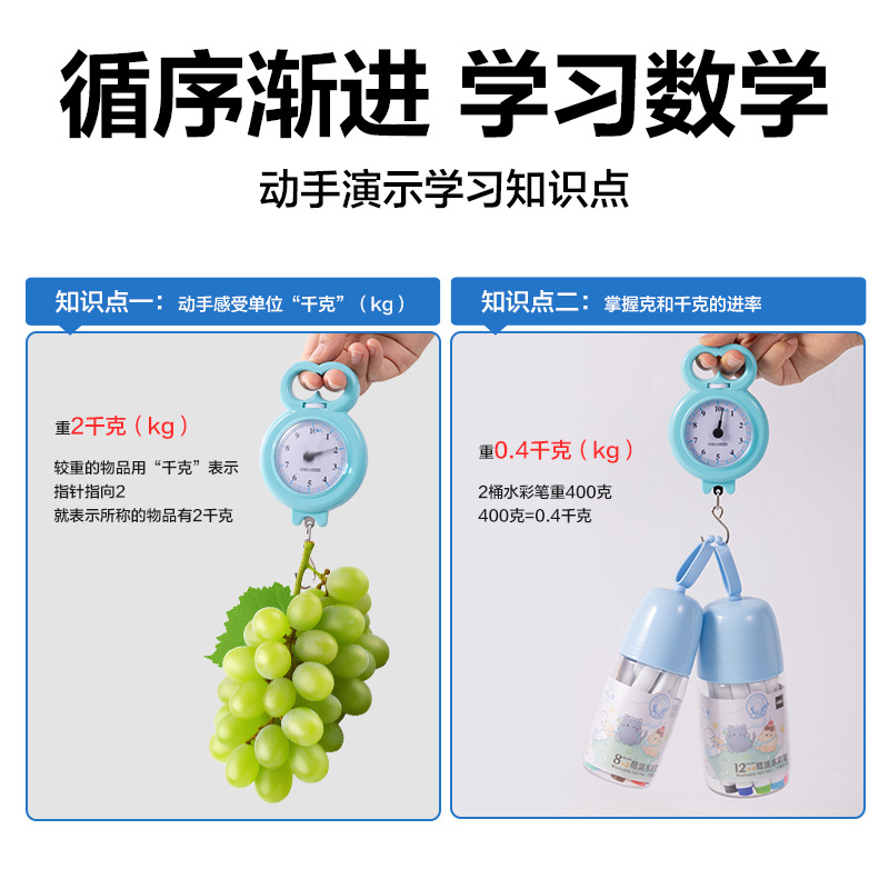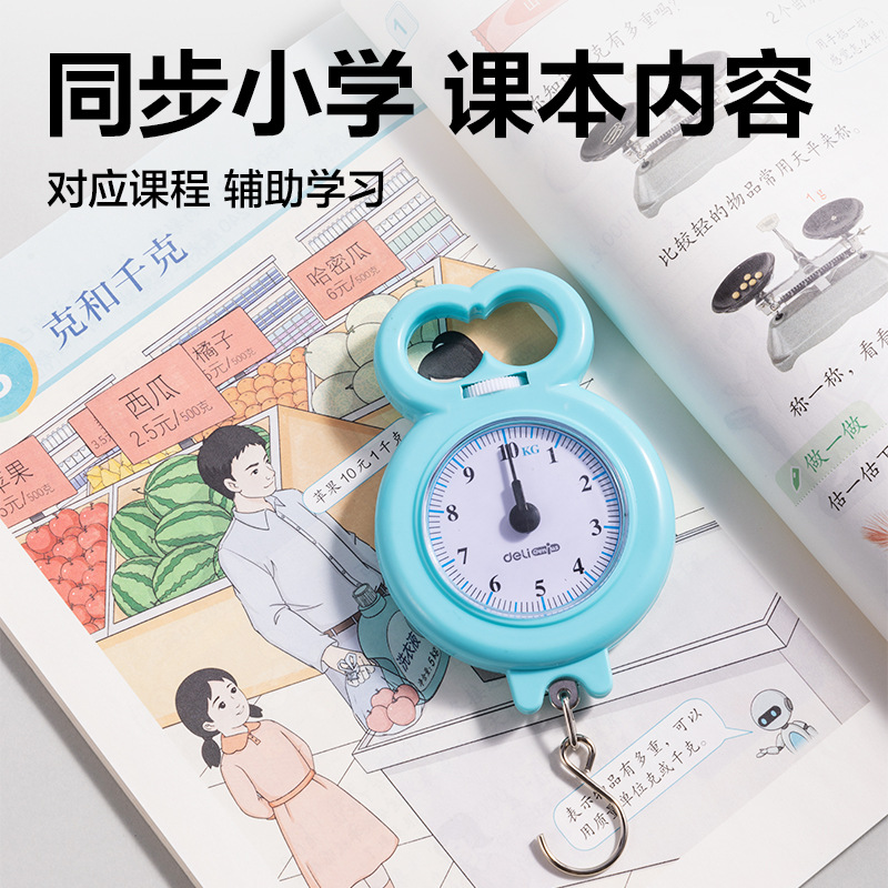 得力YX530学具学生手提秤小学数学课本同步弹簧秤启蒙平衡秤教具