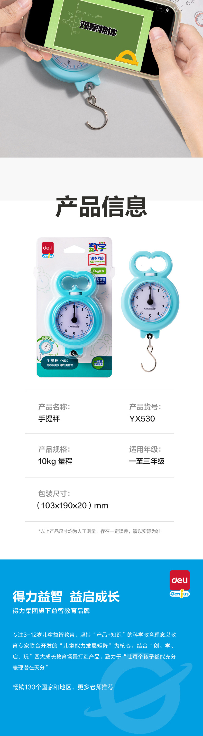 品牌: 得力 材质: 塑料 货号: YX530 颜色: yx530学生手提秤 产地: 浙江 规格: 蓝色1个 是否跨境出口专供货源: 否 产品类别: 其他展示用品