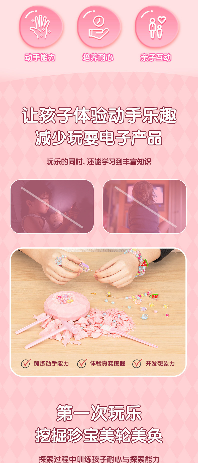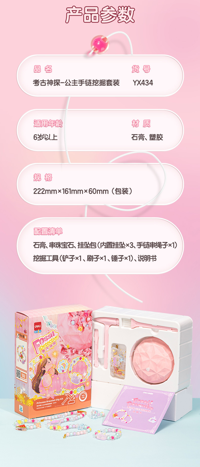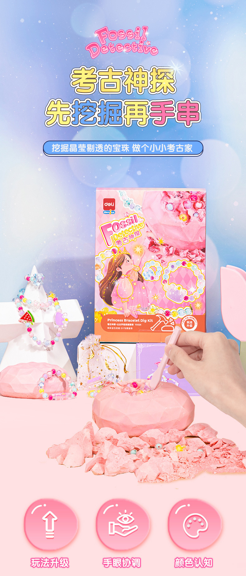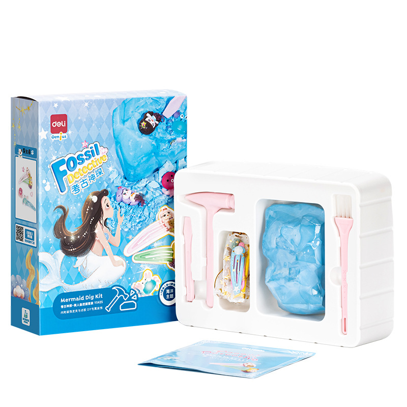 得力儿童考古挖掘玩具美人鱼挖宝石寻宝手工DIY女孩手链制作