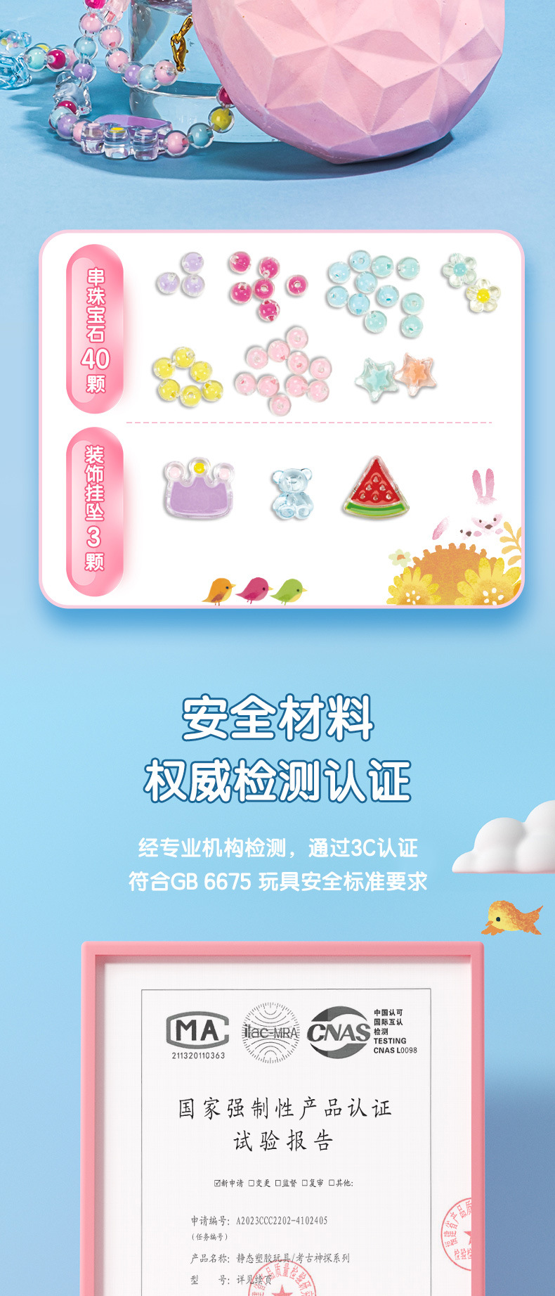 得力儿童考古挖掘玩具美人鱼挖宝石寻宝手工DIY女孩手链制作 投诉