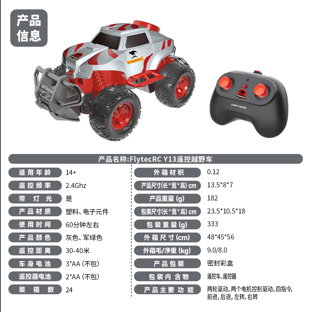 Y13酷炫RC遥控模型赛车2.4G高速漂移攀爬大脚越野车男孩玩具跨境 English | 投诉