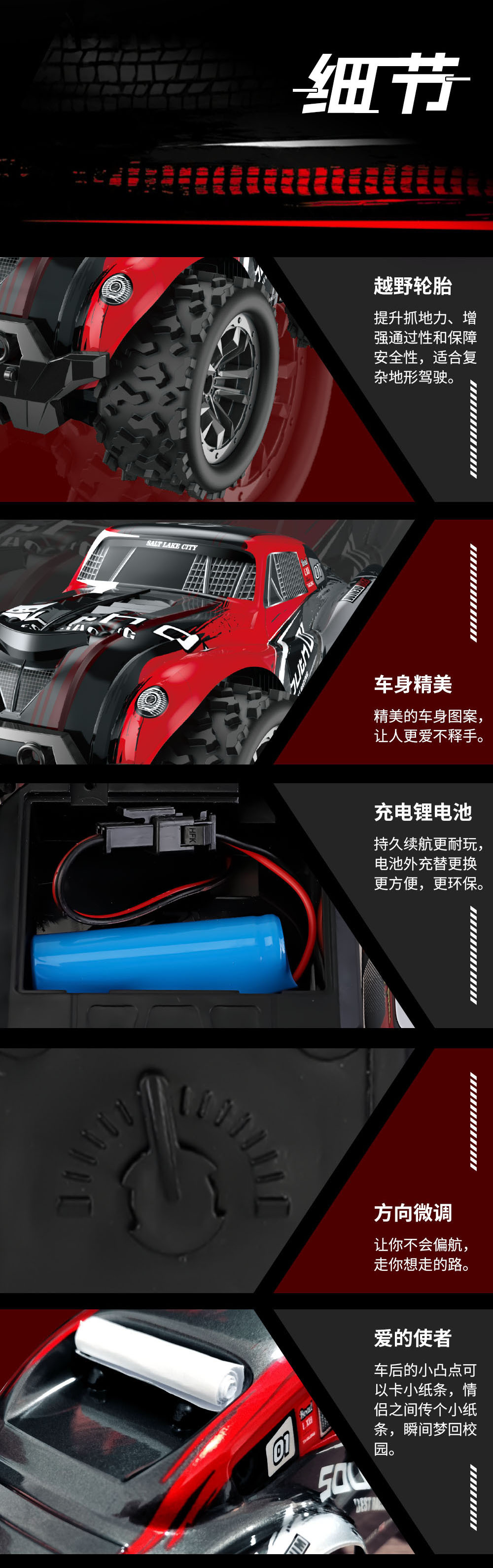 类型: 电池,无线遥控,充电 品牌: FlytecRC 原产地: 汕头 适用人群: 不限,女孩,男孩 是否进口: 国产 包装: 彩盒 玩具材质: 塑料 车型品牌: 无 是否有动漫形象: 否 货号: Y23 是否有导购视频: 是 遥控方式: 手柄 主要销售地区: 欧洲,南美,东南亚,北美 有可授权的自有品牌: 否 是否跨境出口专供货源: 是 适用年龄: 少年(7-14岁) 使用时间: 35分钟左右 遥控距离: 50米左右 充电时间: 45分钟左右 重量: 0.001 kg/盒