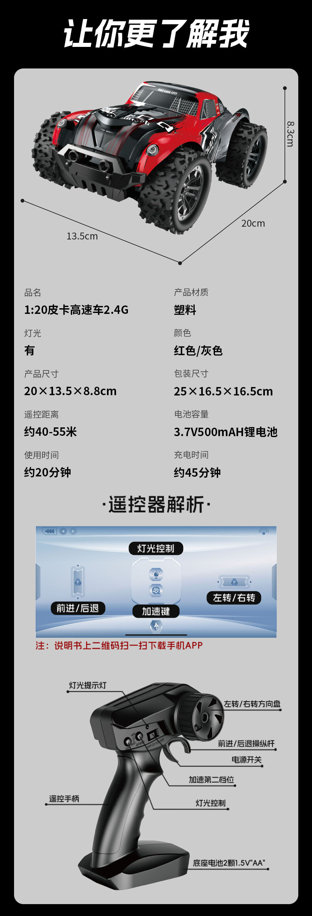 外贸新品Y23高速漂移双遥控高速越野车玩具1:20攀爬RC遥控赛车 English | 投诉