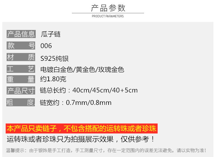 | 0.7mm瓜子链 | ¥2255 | 87744条可售 |