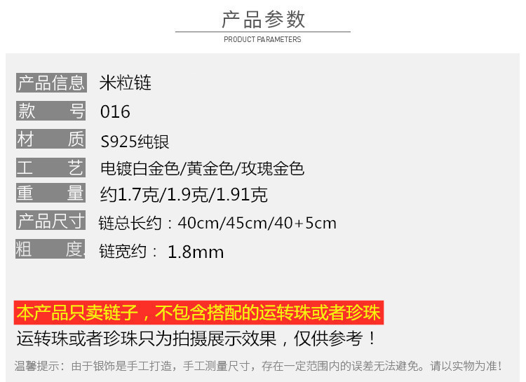 | 1.8mm米粒链 | ¥2756 | 87744条可售 |