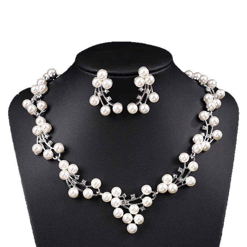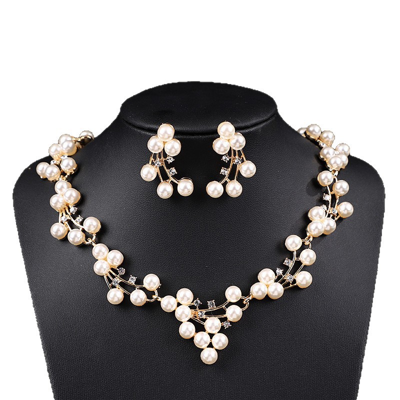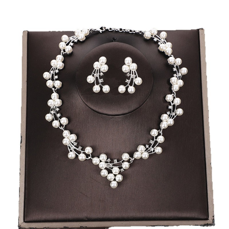 欧美外贸新款新娘珍珠项链套装结婚轻奢小众百搭毛衣链锁骨链合金 投诉